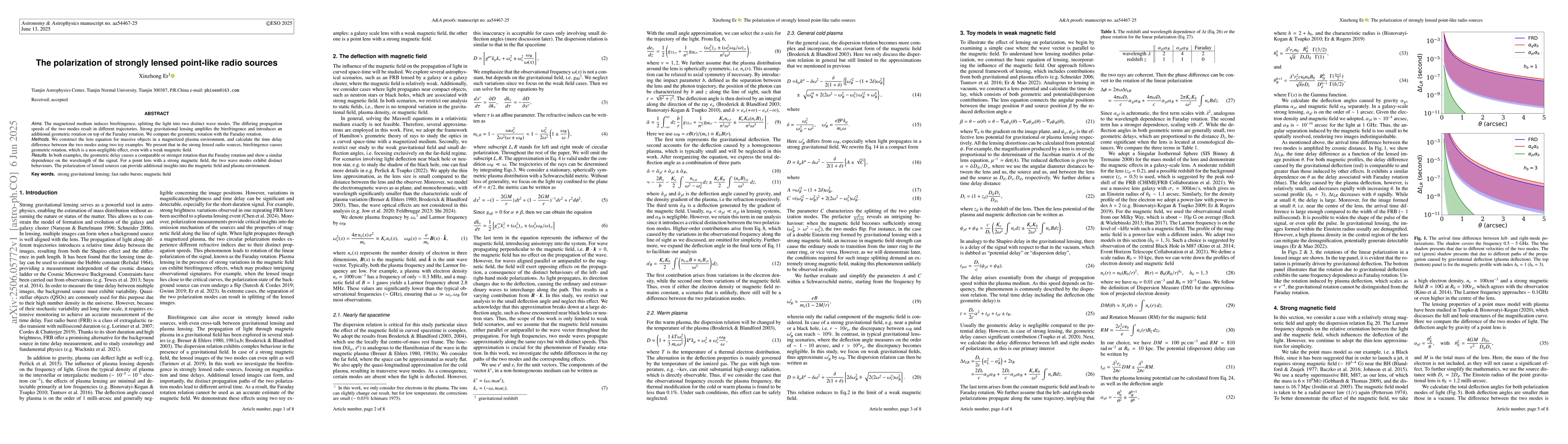 Researchers find that strong gravitational lensing amplifies birefringence in magnetized plasma environments, causing comparable or stronger geometric rotation than Faraday rotation in strongly lensed point-like radio sources.