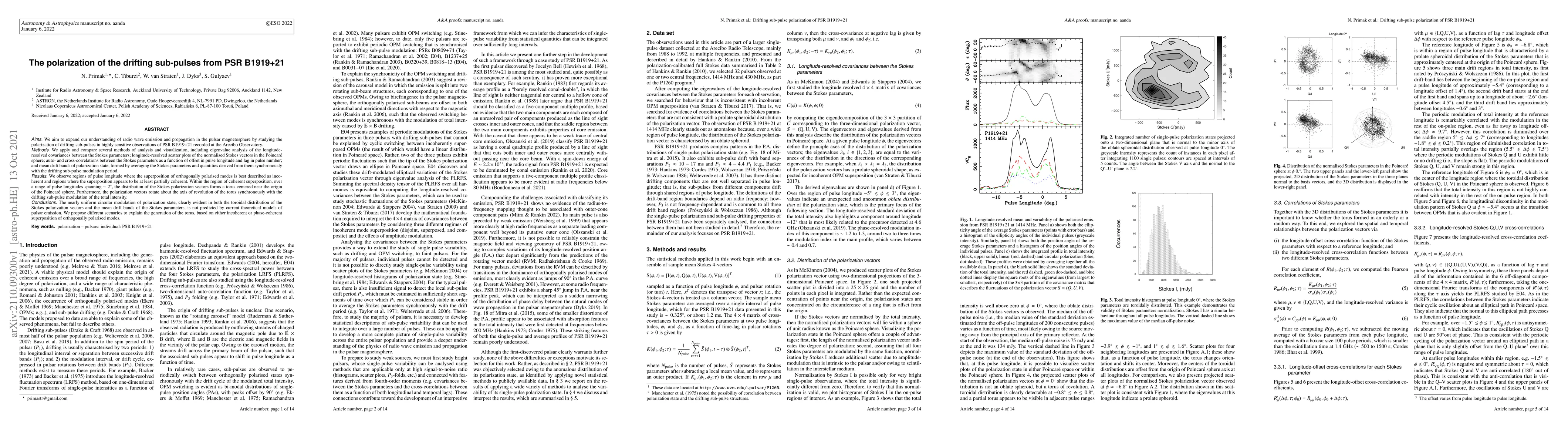 This paper investigates the polarization of drifting sub-pulses in PSR B1919+21 using advanced observational and analytical methods, revealing regions of incoherent and coherent superposition of orthogonally polarized modes. The observed toroidal distribution of polarization vectors challenges current theoretical models of pulsar emission.