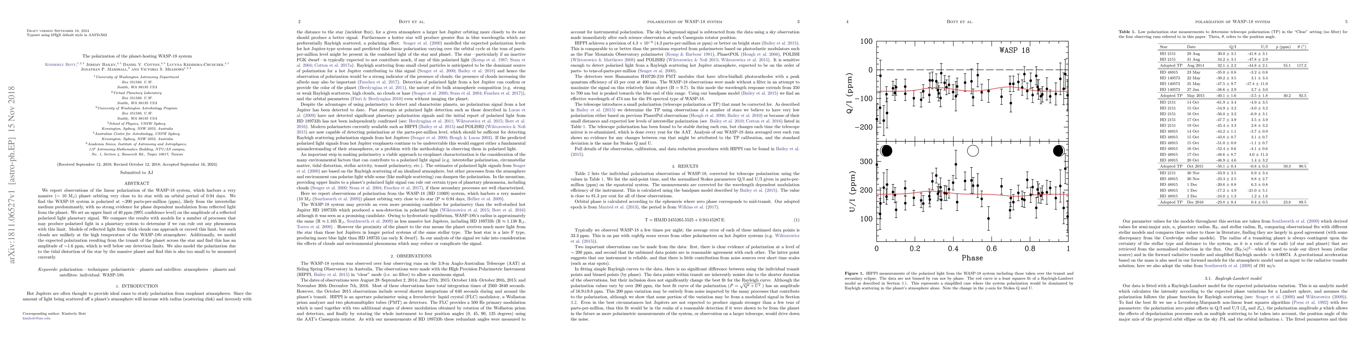 We report observations of the linear polarization of the WASP-18 system, which harbors a very massive ( approx 10 M_J) planet orbiting very close to its star with an orbital period of 0.94 days. We find the WASP-18 system is polarized at about 200 parts-per-million (ppm), likely from the interstellar medium predominantly, with no strong evidence for phase dependent modulation from reflected light from the planet. We set an upper limit of 40 ppm (99% confidence level) on the amplitude of a reflected polarized light planetary signal. We compare the results with models for a number of processes that may produce polarized light in a planetary system to determine if we can rule out any phenomena with this limit. Models of reflected light from thick clouds can approach or exceed this limit, but such clouds are unlikely at the high temperature of the WASP-18b atmosphere. Additionally, we model the expected polarization resulting from the transit of the planet across the star and find this has an amplitude of about 1.6 ppm, which is well below our detection limits. We also model the polarization due to the tidal distortion of the star by the massive planet and find this is also too small to be measured currently.