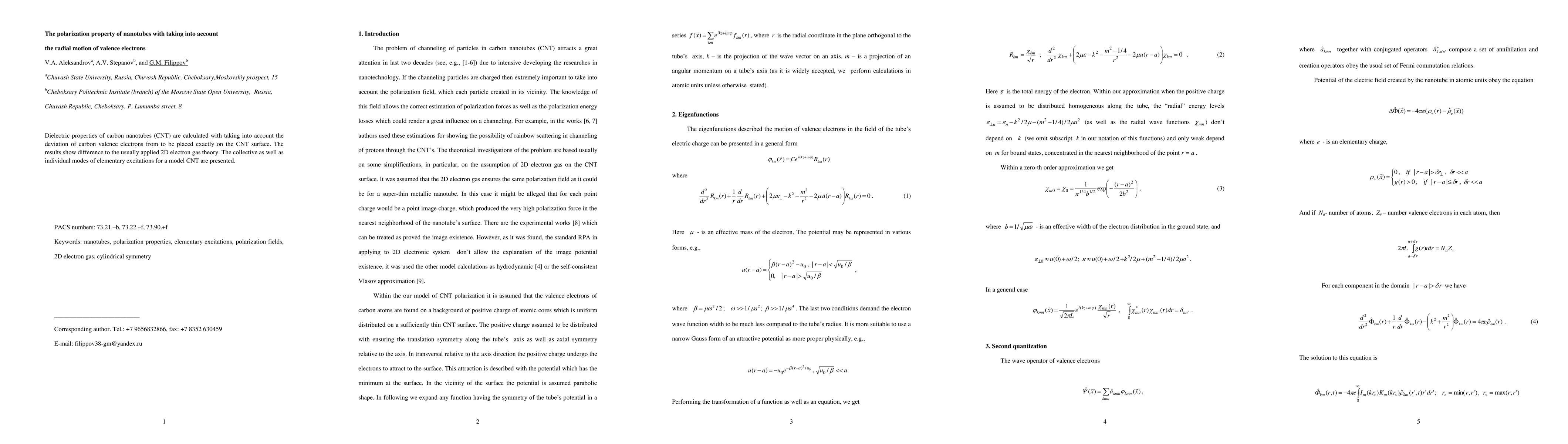 Research finds that considering valence electrons' radial motion affects CNT dielectric properties differently from 2D electron gas theory. This discovery has implications for understanding CNT behavior and excitations.