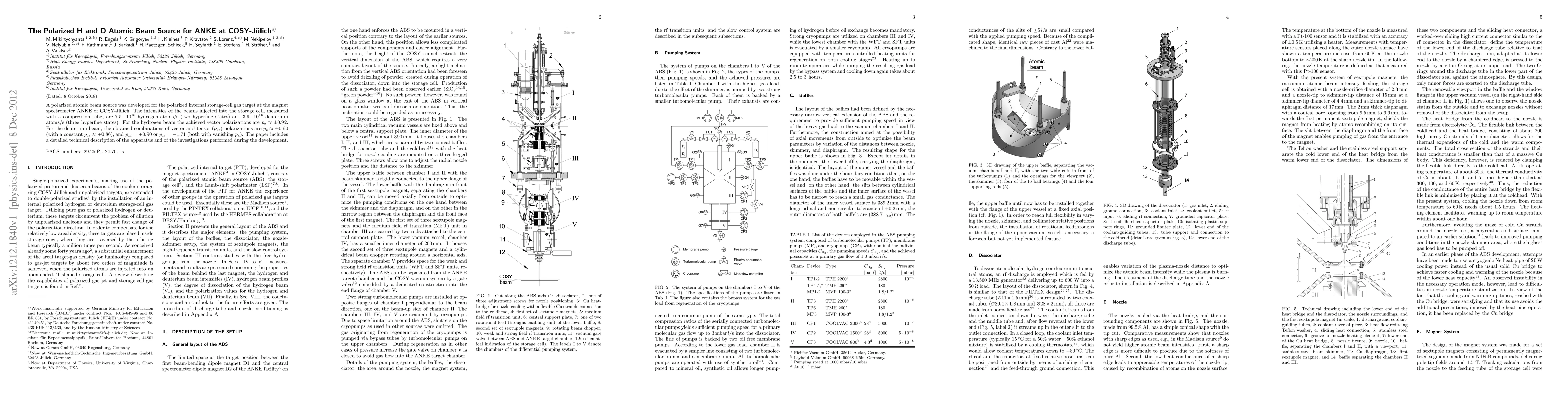 A polarized atomic beam source was developed for the polarized internal storage-cell gas target at the magnet spectrometer ANKE of COSY-J\"ulich. The intensities of the beams injected into the storage cell, measured with a compression tube, are $7.5\cdot 10^{16}$ hydrogen atoms/s (two hyperfine states) and $3.9\cdot 10^{16}$ deuterium atoms/s (three hyperfine states). For the hydrogen beam the achieved vector polarizations are $p_{\rm z}\approx\pm0.92$. For the deuterium beam, the obtained combinations of vector and tensor ($p_{\rm zz}$) polarizations are $p_{\rm z}\approx\pm 0.90$ (with a constant $p_{\rm zz}\approx +0.86$), and $p_{\rm zz}=+0.90$ or $p_{\rm zz}=-1.71$ (both with vanishing $p_{\rm z}$). The paper includes a detailed technical description of the apparatus and of the investigations performed during the development.