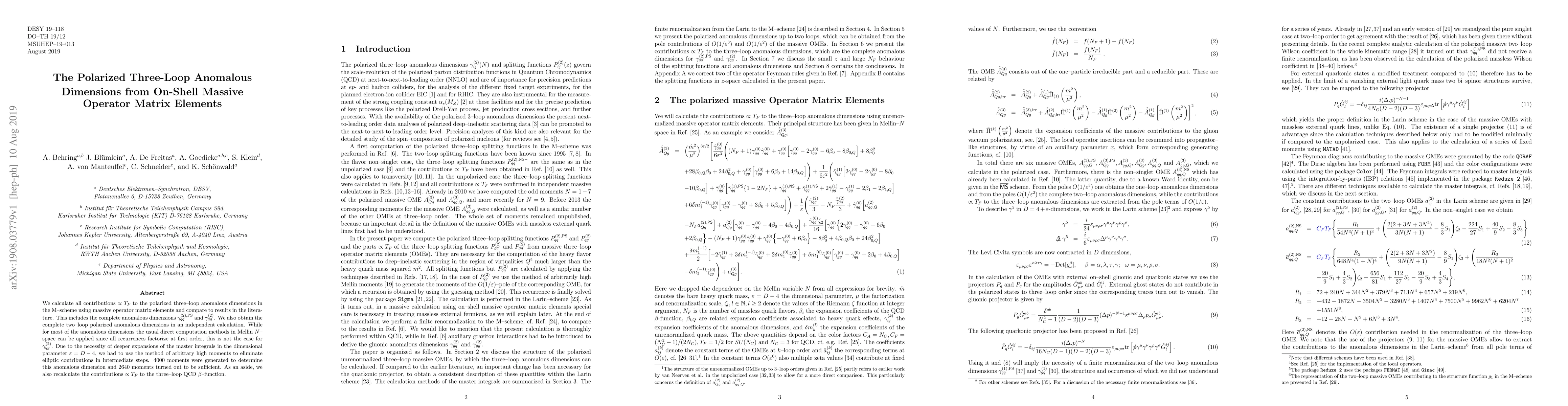 J. Blümlein, C. Schneider, K. Schönwald et al.