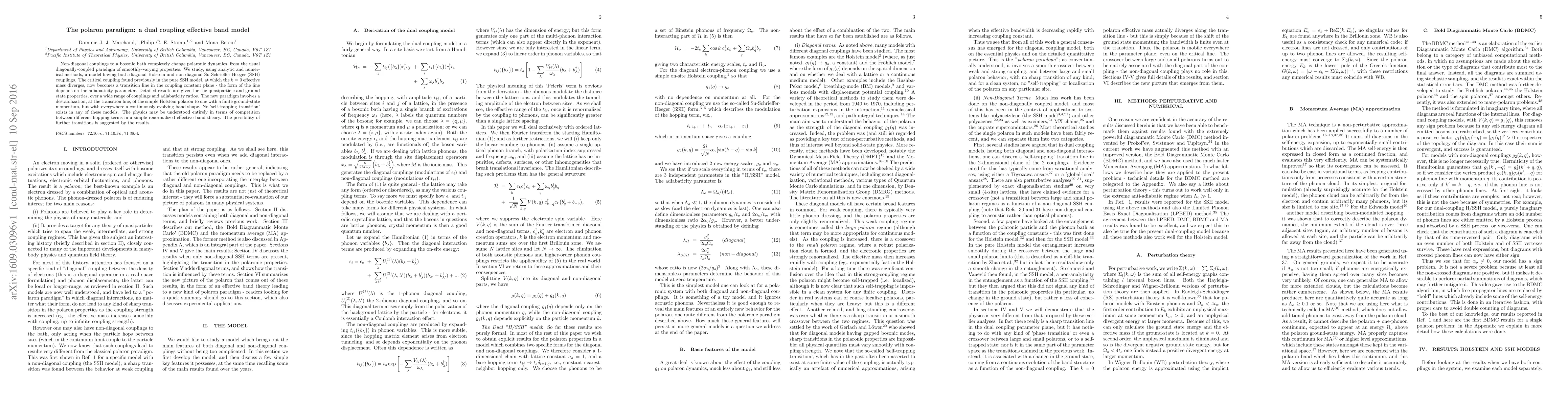 Non-diagonal couplings to a bosonic bath completely change polaronic dynamics, from the usual diagonally-coupled paradigm of smoothly-varying properties. We study, using analytic and numerical methods, a model having both diagonal Holstein and non-diagonal Su-Schrieffer-Heeger (SSH) couplings. The critical coupling found previously in the pure SSH model, at which the $k=0$ effective mass diverges, now becomes a transition line in the coupling constant plane - the form of the line depends on the adiabaticity parameter. Detailed results are given for the quasiparticle and ground state properties, over a wide range of couplings and adiabaticity ratios. The new paradigm involves a destabilization, at the transition line, of the simple Holstein polaron to one with a finite ground-state momentum, but with everywhere a continuously evolving band shape. No 'self-trapping transition' exists in any of these models. The physics may be understood entirely in terms of competition between different hopping terms in a simple renormalized effective band theory. The possibility of further transitions is suggested by the results.