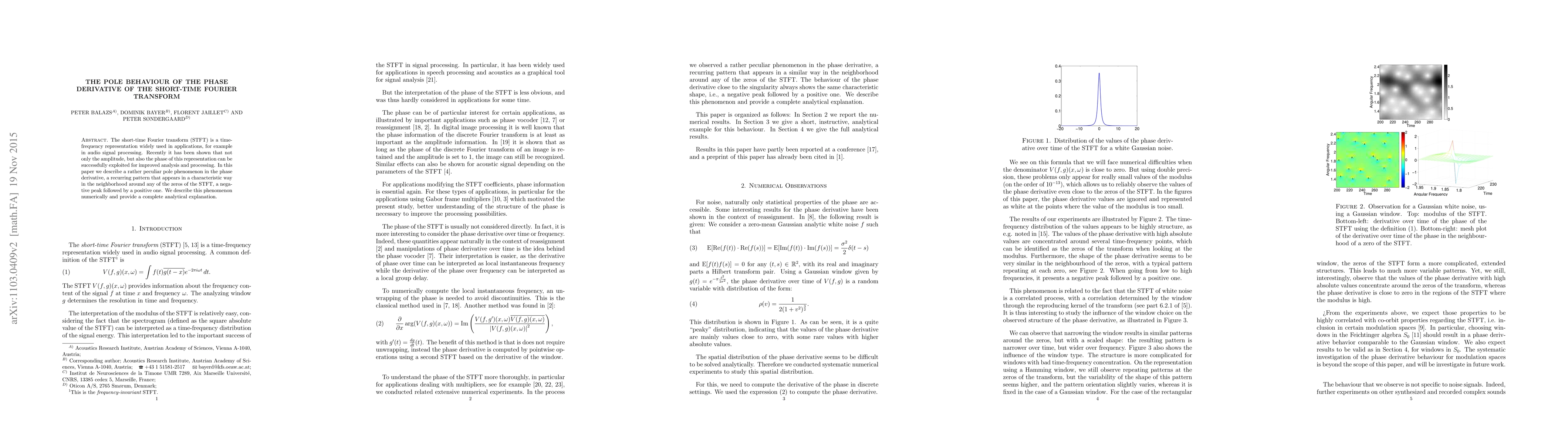 The short-time Fourier transform (STFT) is a time-frequency representation widely used in applications, for example in audio signal processing. Recently it has been shown that not only the amplitude, but also the phase of this representation can be successfully exploited for improved analysis and processing. In this paper we describe a rather peculiar pole phenomenon in the phase derivative, a recurring pattern that appears in a characteristic way in the neighborhood around any of the zeros of the STFT, a negative peak followed by a positive one. We describe this phenomenon numerically and provide a complete analytical explanation.