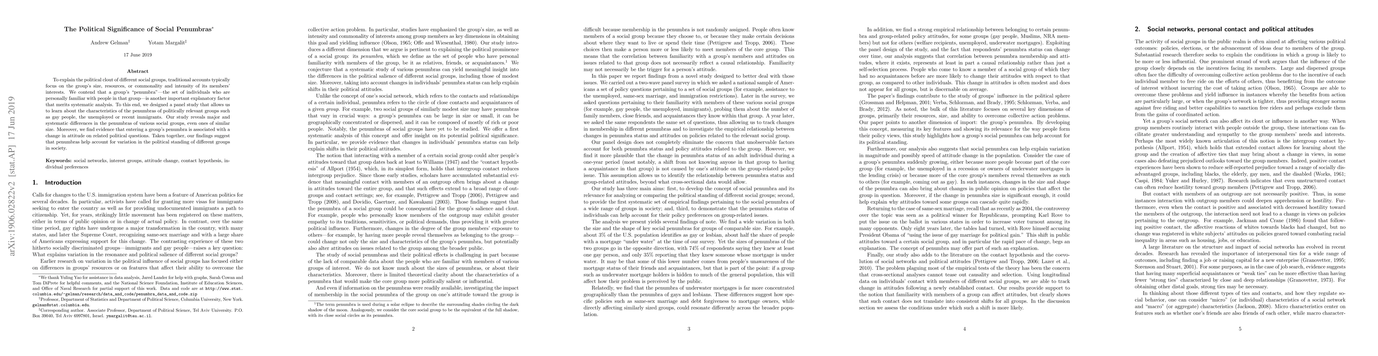 To explain the political clout of different social groups, traditional accounts typically focus on the group's size, resources, or commonality and intensity of its members' interests. We contend that a group's "penumbra"-the set of individuals who are personally familiar with people in that group--is another important explanatory factor that merits systematic analysis. To this end, we designed a panel study that allows us to learn about the characteristics of the penumbras of politically relevant groups such as gay people, the unemployed or recent immigrants. Our study reveals major and systematic differences in the penumbras of various social groups, even ones of similar size. Moreover, we find evidence that entering a group's penumbra is associated with a change in attitude on related political questions. Taken together, our findings suggest that penumbras help account for variation in the political standing of different groups in society.