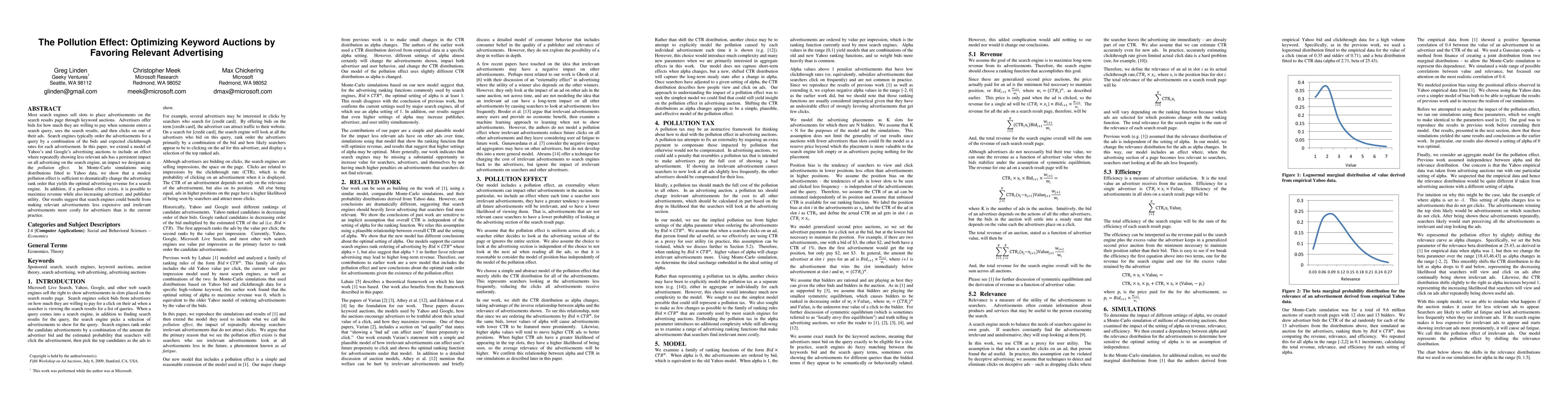 This paper explores how the "pollution effect" from repeatedly displaying less relevant ads can significantly alter the optimal ranking of advertisements in keyword auctions, suggesting that search engines could maximize revenue and improve advertiser and publisher utility by favoring more relevant ads.