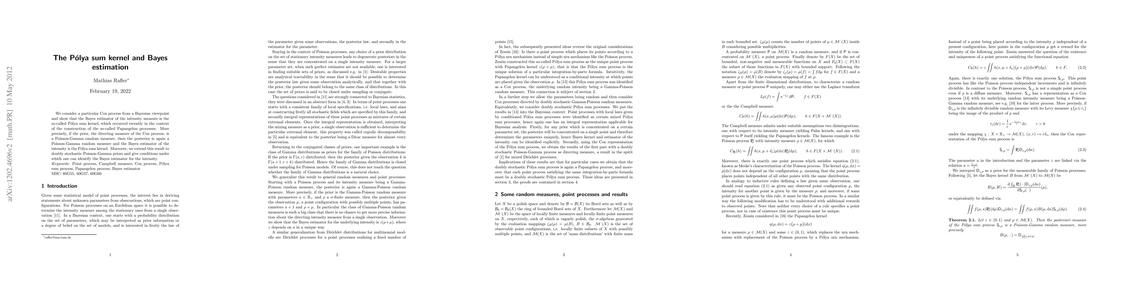 This paper demonstrates that the Bayes estimator for the intensity measure of a Cox process, when the prior is a Poisson-Gamma random measure, is the Pólya sum kernel. It extends this result to doubly stochastic Poisson-Gamma priors and provides conditions for identifying the Bayes estimator for the intensity.