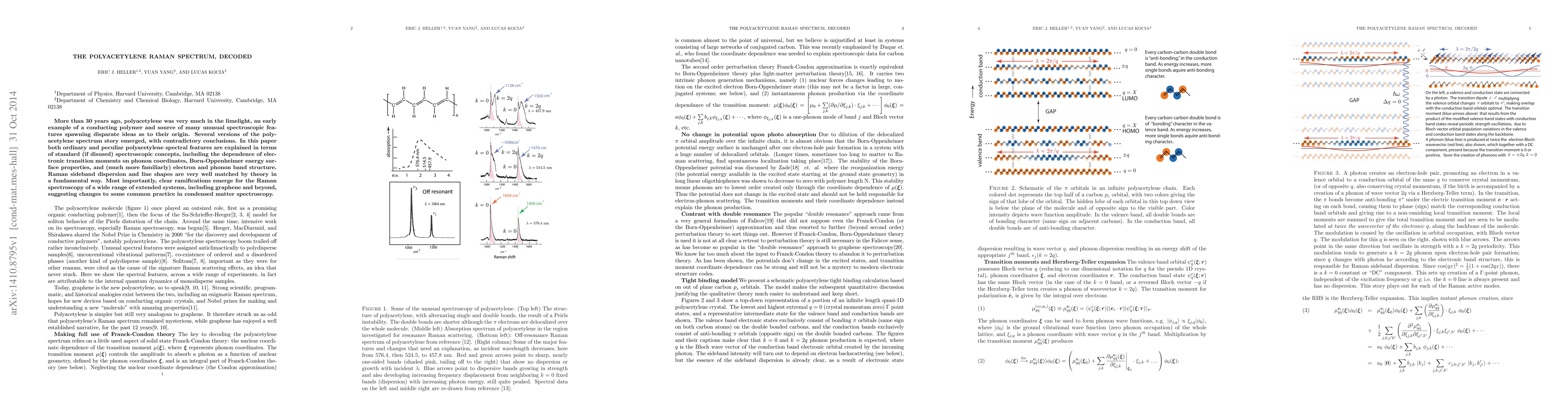 More than 30 years ago, polyacetylene was very much in the limelight, an early example of a conducting polymer and source of many unusual spectroscopic features spawning disparate ideas as to their origin. Several versions of the polyacetylene spectrum story emerged, with contradictory conclusions. In this paper both ordinary and peculiar polyacetylene spectral features are explained in terms of standard (if disused) spectroscopic concepts, including the dependence of electronic transition moments on phonon coordinates, Born-Oppenheimer energy surface properties, and (much more familiarly) electron and phonon band structure. Raman sideband dispersion and line shapes are very well matched by theory in a fundamental way. Most importantly, clear ramifications emerge for the Raman spectroscopy of a wide range of extended systems, including graphene and beyond, suggesting changes to some common practice in condensed matter spectroscopy.