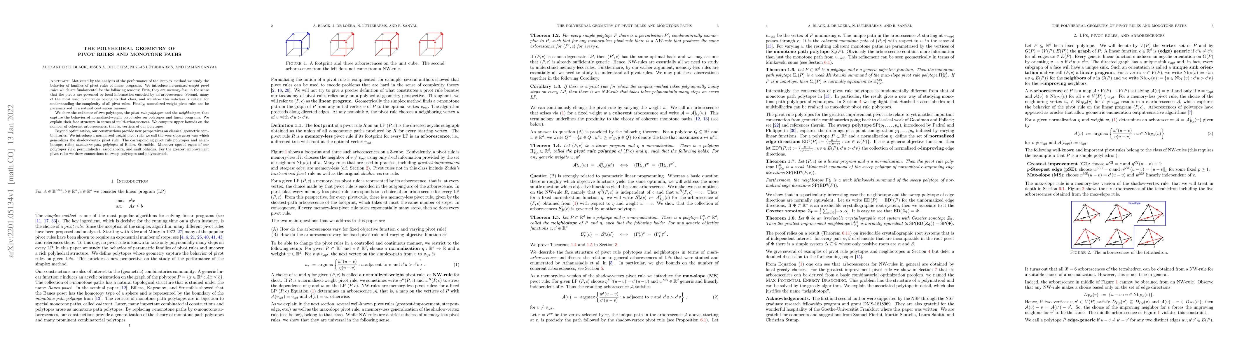 Motivated by the analysis of the performance of the simplex method we study the behavior of families of pivot rules of linear programs. We introduce normalized-weight pivot rules which are fundamental for the following reasons: First, they are memory-less, in the sense that the pivots are governed by local information encoded by an arborescence. Second, many of the most used pivot rules belong to that class, and we show this subclass is critical for understanding the complexity of all pivot rules. Finally, normalized-weight pivot rules can be parametrized in a natural continuous manner. We show the existence of two polytopes, the pivot rule polytopes and the neighbotopes, that capture the behavior of normalized-weight pivot rules on polytopes and linear programs. We explain their face structure in terms of multi-arborescences. We compute upper bounds on the number of coherent arborescences, that is, vertices of our polytopes. Beyond optimization, our constructions provide new perspectives on classical geometric combinatorics. We introduce a normalized-weight pivot rule, we call the max-slope pivot rule which generalizes the shadow-vertex pivot rule. The corresponding pivot rule polytopes and neighbotopes refine monotone path polytopes of Billera--Sturmfels. Moreover special cases of our polytopes yield permutahedra, associahedra, and multiplihedra. For the greatest improvement pivot rules we draw connections to sweep polytopes and polymatroids.