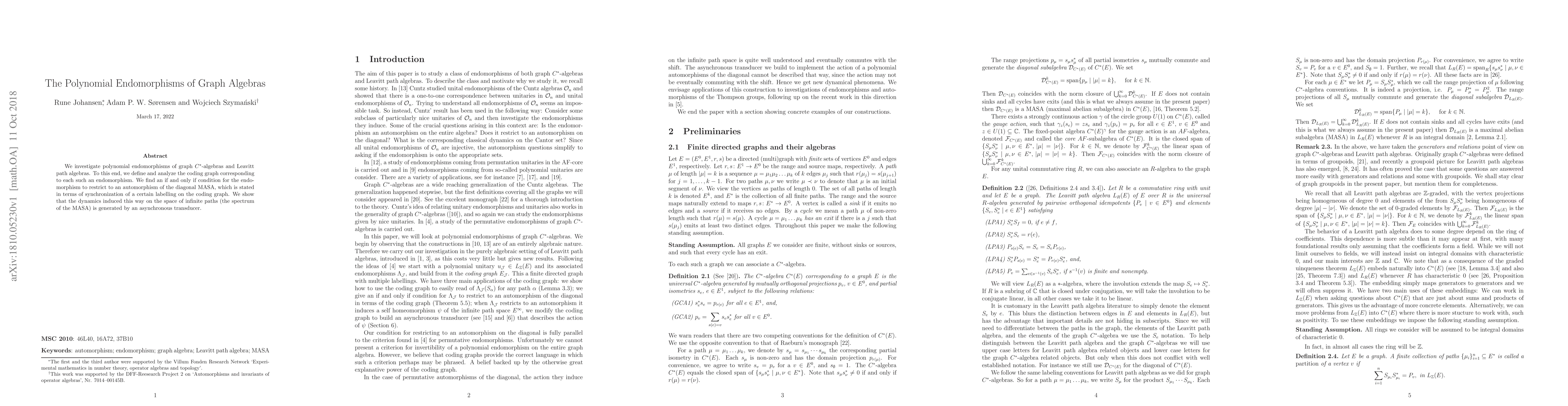 This paper explores polynomial endomorphisms in graph $C^*$-algebras and Leavitt path algebras, defining and analyzing corresponding coding graphs. It establishes a condition for endomorphisms to be automorphisms of diagonal MASAs based on graph synchronization, and shows that induced dynamics on infinite paths are generated by asynchronous transducers.
