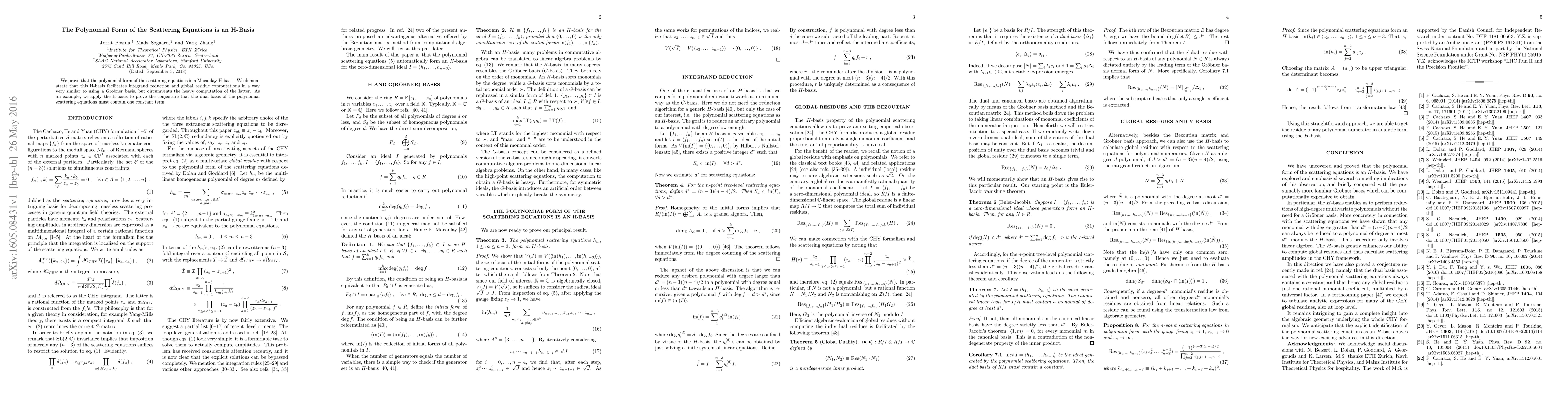 We prove that the polynomial form of the scattering equations is a Macaulay H-basis. We demonstrate that this H-basis facilitates integrand reduction and global residue computations in a way very similar to using a Gr\"obner basis, but circumvents the heavy computation of the latter. As an example, we apply the H-basis to prove the conjecture that the dual basis of the polynomial scattering equations must contain one constant term.