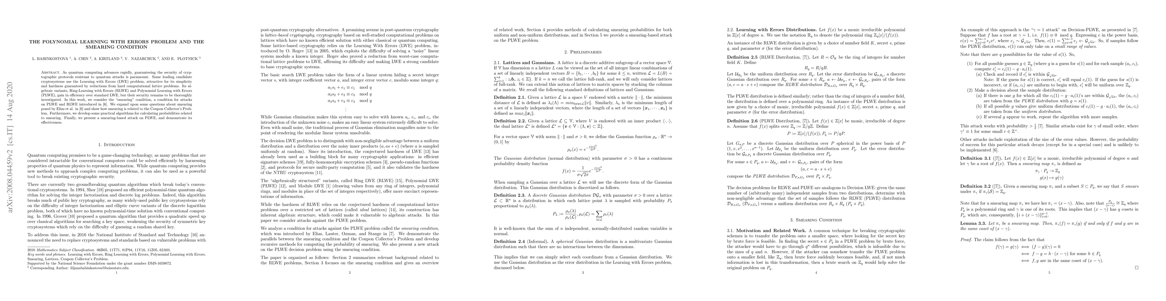 As quantum computing advances rapidly, guaranteeing the security of cryptographic protocols resistant to quantum attacks is paramount. Some leading candidate cryptosystems use the Learning with Errors (LWE) problem, attractive for its simplicity and hardness guaranteed by reductions from hard computational lattice problems. Its algebraic variants, Ring-Learning with Errors (RLWE) and Polynomial Learning with Errors (PLWE), gain in efficiency over standard LWE, but their security remains to be thoroughly investigated. In this work, we consider the "smearing" condition, a condition for attacks on PLWE and RLWE introduced in [6]. We expand upon some questions about smearing posed by Elias et al. in [6] and show how smearing is related to the Coupon Collector's Problem Furthermore, we develop some practical algorithms for calculating probabilities related to smearing. Finally, we present a smearing-based attack on PLWE, and demonstrate its effectiveness.