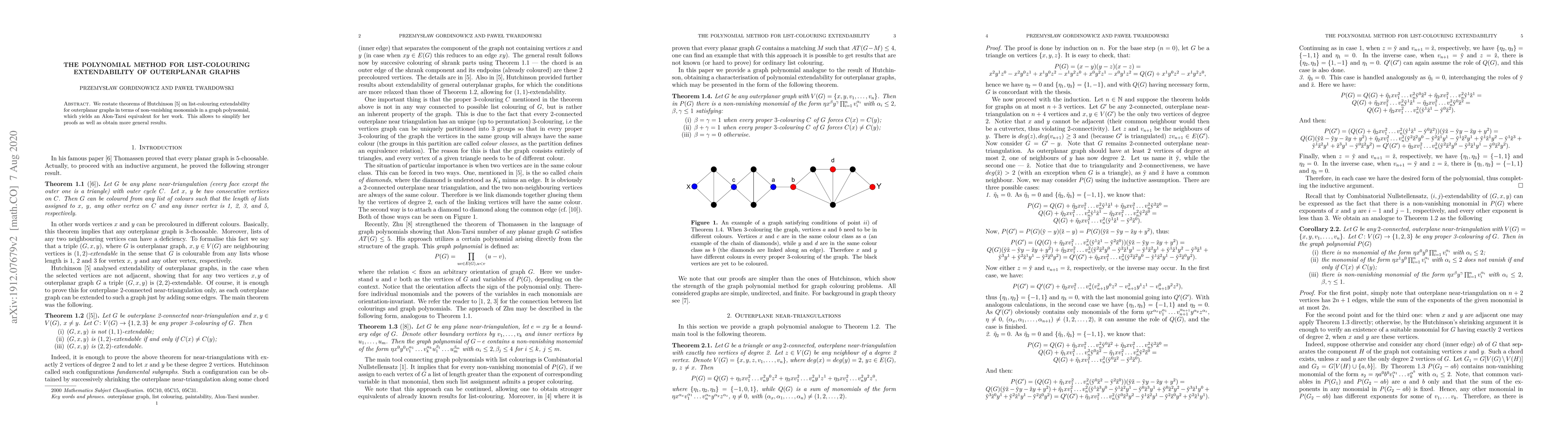 We restate theorems of Hutchinson on list-colouring extendability for outerplanar graphs in terms of non-vanishing monomials in a graph polynomial, which yields an Alon-Tarsi equivalent for her work. This allows to simplify her proofs as well as obtain more general results.
