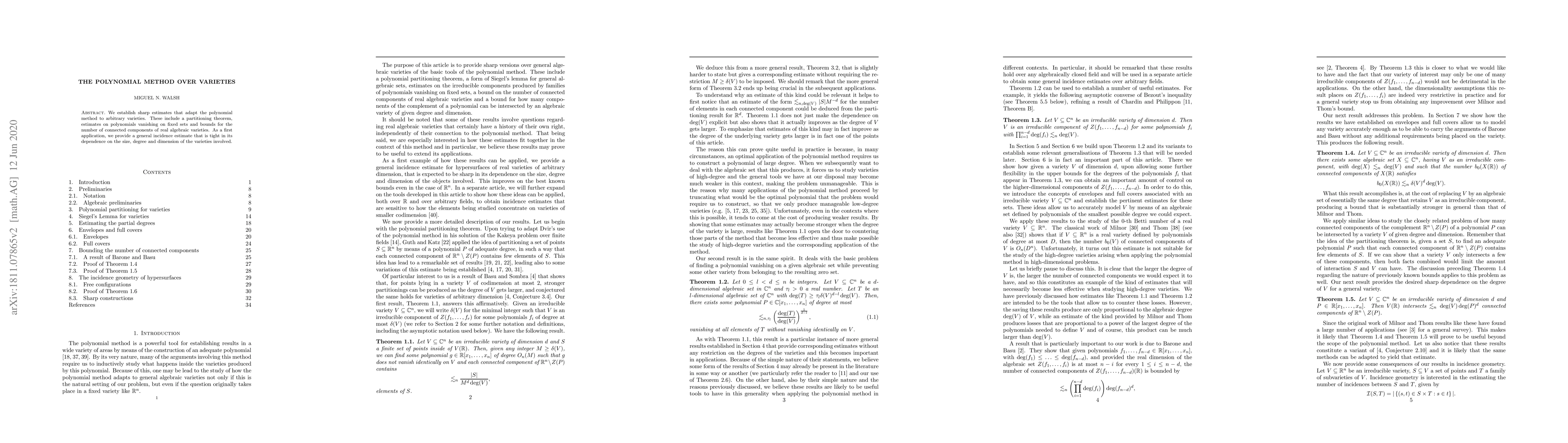 This paper introduces a polynomial method for arbitrary varieties, providing sharp estimates on partitioning, vanishing polynomials, and connected components, with applications to general incidence estimates.