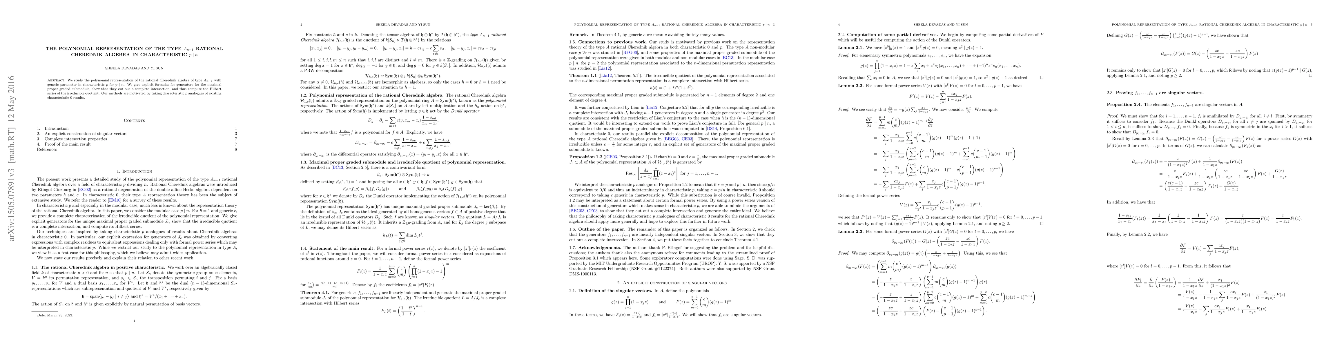 We study the polynomial representation of the rational Cherednik algebra of type $A_{n-1}$ with generic parameter in characteristic $p$ for $p \mid n$. We give explicit formulas for generators for the maximal proper graded submodule, show that they cut out a complete intersection, and thus compute the Hilbert series of the irreducible quotient. Our methods are motivated by taking characteristic $p$ analogues of existing characteristic $0$ results.