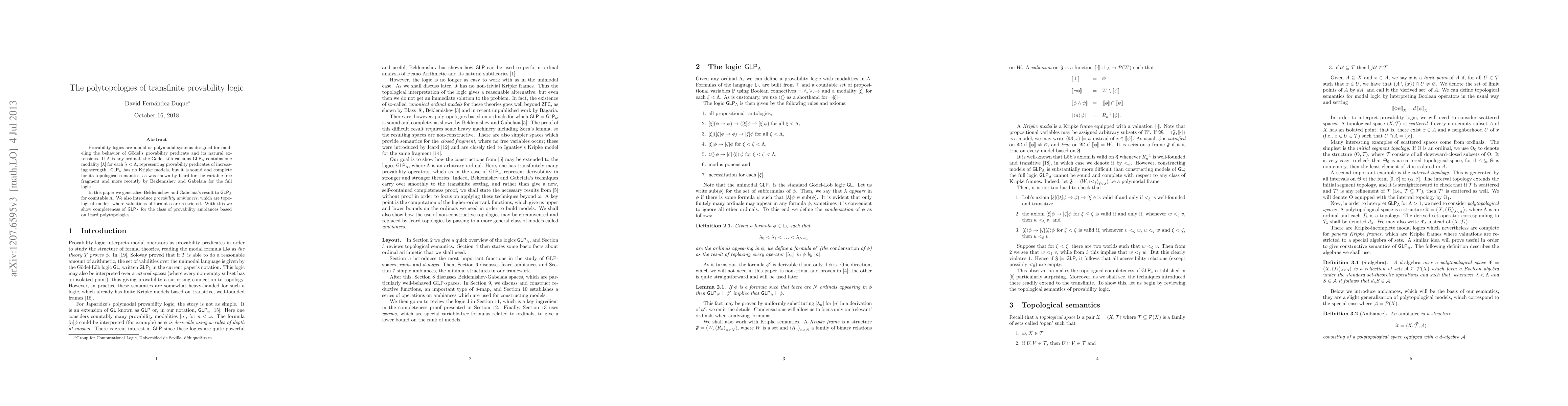 Provability logics are modal or polymodal systems designed for modeling the behavior of G\"odel's provability predicate in arithmetical theories and its natural extensions. If \Lambda is any ordinal, the G\"odel-L\"ob calculus GLP(\Lambda) contains one modality [\lambda] for each \lambda<\Lambda, representing provability predicates of increasing strength. GLP(\Lambda) has no Kripke models, but Beklemishev and Gabelaia recently proved that GLP(\omega) is complete for its class of topological models. In this paper we generalize Beklemishev and Gabelaia's result to GLP(\Lambda) for arbitrary \Lambda. We also introduce provability ambiances, which are topological models where valuations of formulas are restricted. With this we show completeness of GLP(\Lambda) for the class of provability ambiances based on Icard polytopologies.