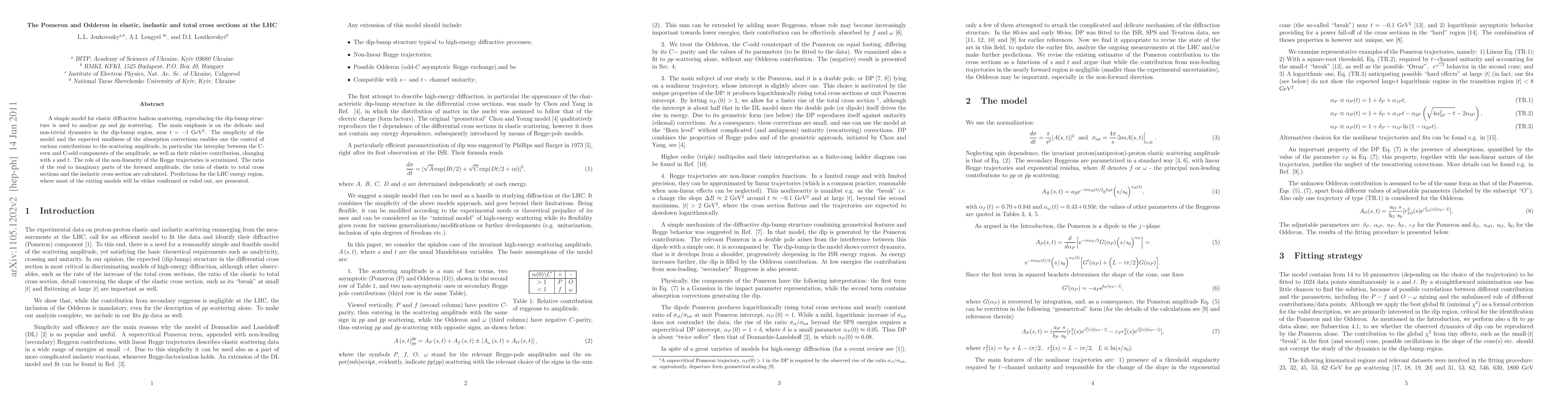 A simple model for elastic diffractive hadron scattering, reproducing the dip-bump structure is used to analyze PP and $\bar PP$ scattering. The main emphasis is on the delicate and non-trivial dynamics in the dip-bump region, near t=-1 GeV$^2$. The simplicity of the model and the expected smallness of the absorption corrections enables one the control of various contributions to the scattering amplitude, in particular the interplay between the C-even and C-odd components of the amplitude, as well as their relative contribution, changing with s and t. The role of the non-linearity of the Regge trajectories is scrutinized. The ratio of the real to imaginary parts of the forward amplitude, the ratio of elastic to total cross sections and the inelastic cross section are calculated. Predictions for the LHC energy region, where most of the exiting models will be either confirmed or ruled out, are presented.