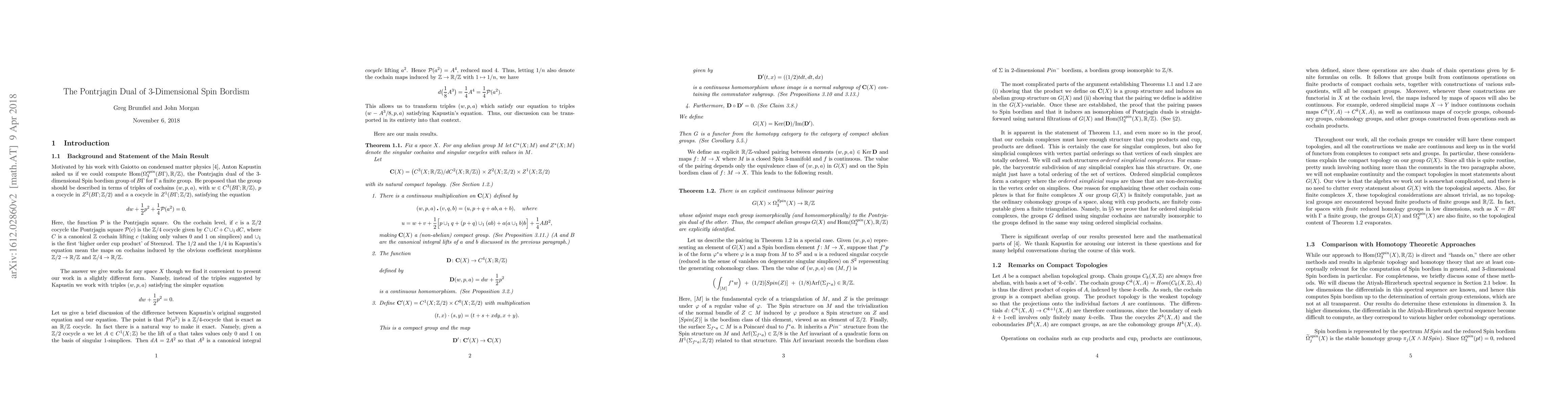 This paper defines a group G(X) from cochains on X and constructs a pairing between G(X) and 3-dimensional spin bordism groups, identifying each as the Pontrjagin dual of the other. The pairing is functorial and explicit.