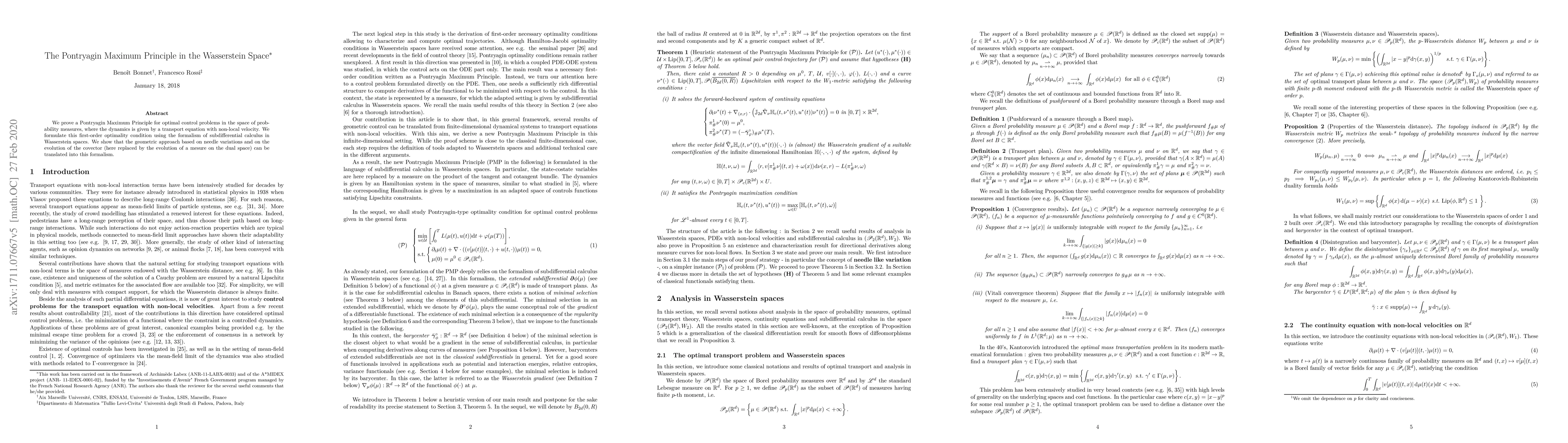 We prove a Pontryagin Maximum Principle for optimal control problems in the space of probability measures, where the dynamics is given by a transport equation with non-local velocity. We formulate this first-order optimality condition using the formalism of subdifferential calculus in Wasserstein spaces. We show that the geometric approach based on needle variations and on the evolution of the covector (here replaced by the evolution of a mesure on the dual space) can be translated into this formalism.