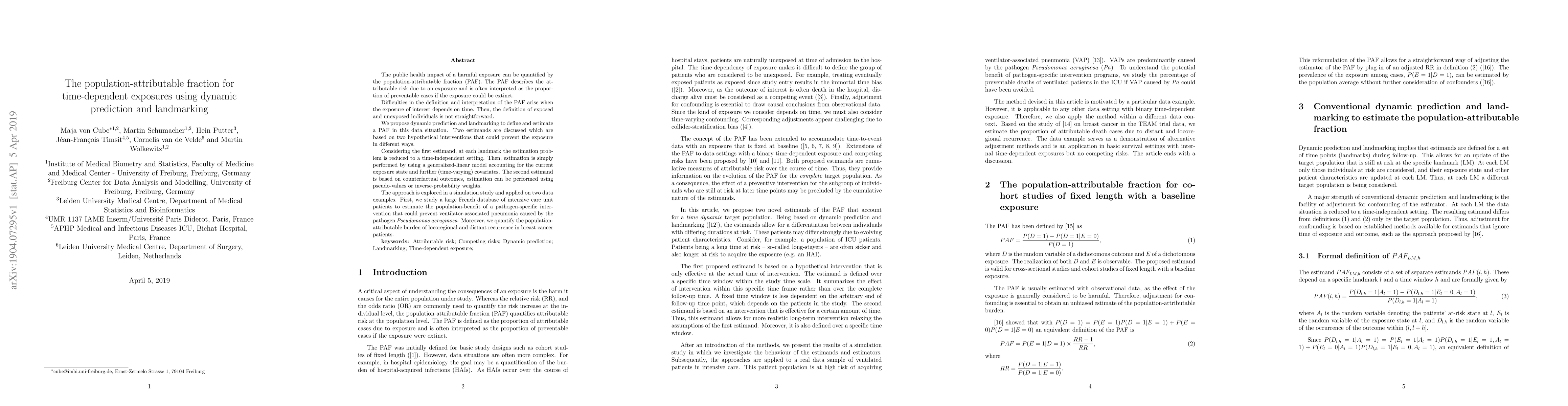 This paper proposes a method to estimate population-attributable fraction for time-dependent exposures using dynamic prediction and landmarking, which can quantify the impact of harmful exposure on public health.