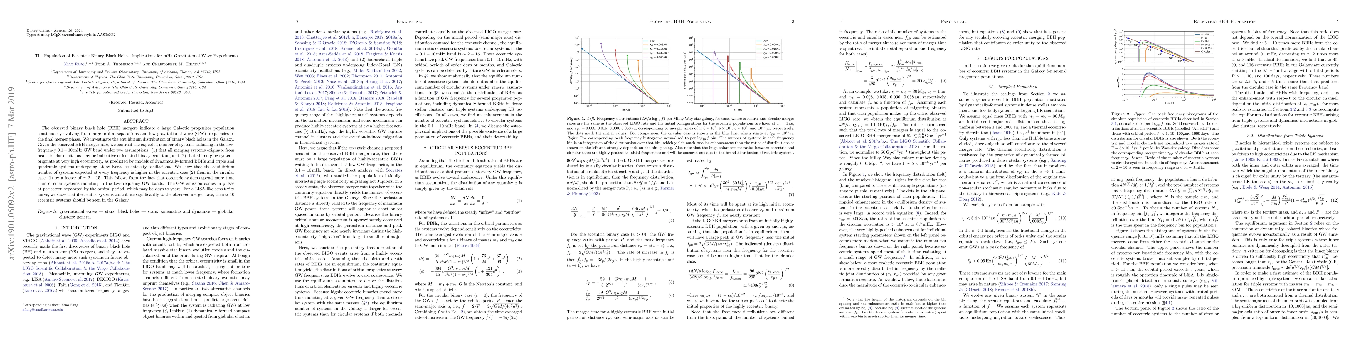 The observed binary black hole (BBH) mergers indicate a large Galactic progenitor population continuously evolving from large orbital separations and low gravitational wave (GW) frequencies to the final merger phase. We investigate the equilibrium distribution of binary black holes in the Galaxy. Given the observed BBH merger rate, we contrast the expected number of systems radiating in the low-frequency $0.1-10\,$mHz GW band under two assumptions: (1) that all merging systems originate from near-circular orbits, as may be indicative of isolated binary evolution, and (2) that all merging systems originate at very high eccentricity, as predicted by models of dynamically-formed BBHs and triple and quadruple systems undergoing Lidov-Kozai eccentricity oscillations. We show that the equilibrium number of systems expected at every frequency is higher in the eccentric case (2) than in the circular case (1) by a factor of $\simeq 2-15$. This follows from the fact that eccentric systems spend more time than circular systems radiating in the low-frequency GW bands. The GW emission comes in pulses at periastron separated by the orbital period, which may be days to years. For a LISA-like sensitivity curve, we show that if eccentric systems contribute significantly to the observed merger rate, then $\simeq 10$ eccentric systems should be seen in the Galaxy.