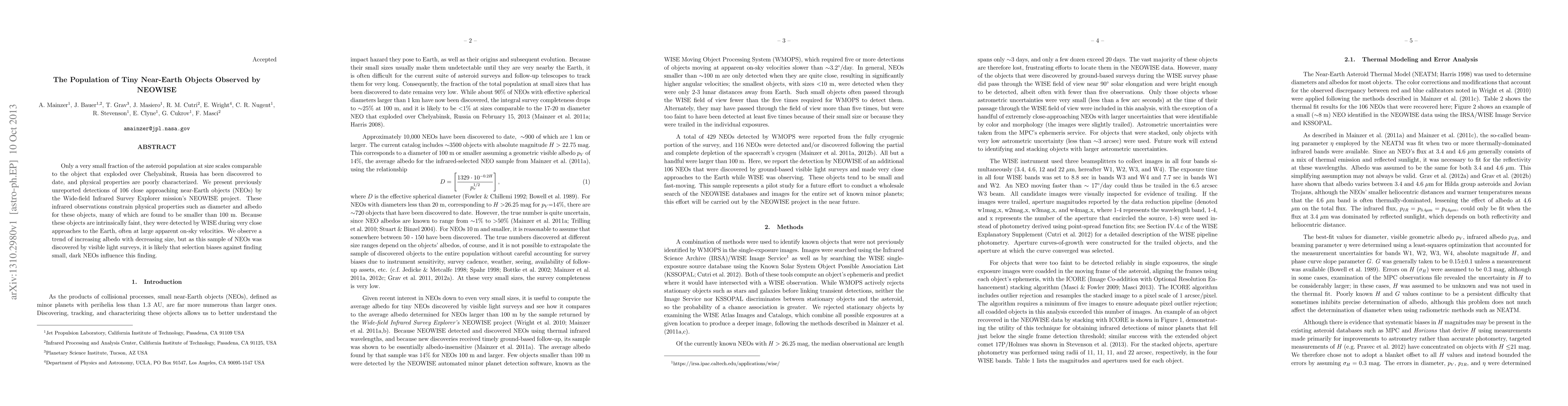 A new study reports detection of 106 previously unseen near-Earth objects using WISE's NEOWISE mission, providing insights into their physical properties and suggesting a trend of increasing albedo with decreasing size.