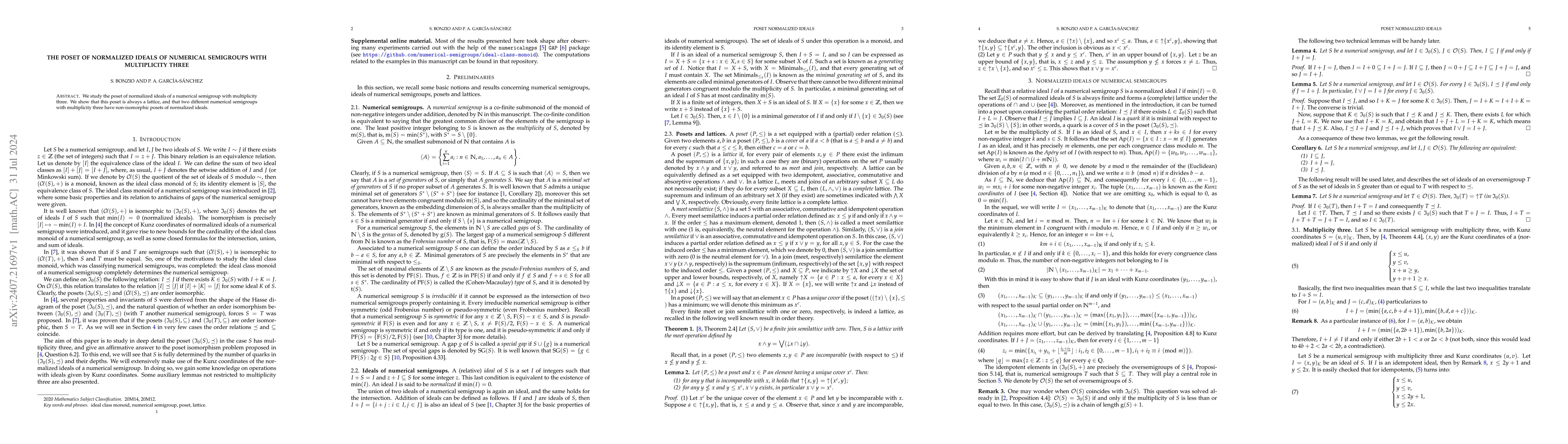 Summary: This paper investigates the poset of normalized ideals of numerical semigroups with multiplicity three, demonstrating that such posets are always lattices and that different such semigroups yield non-isomorphic poset structures.