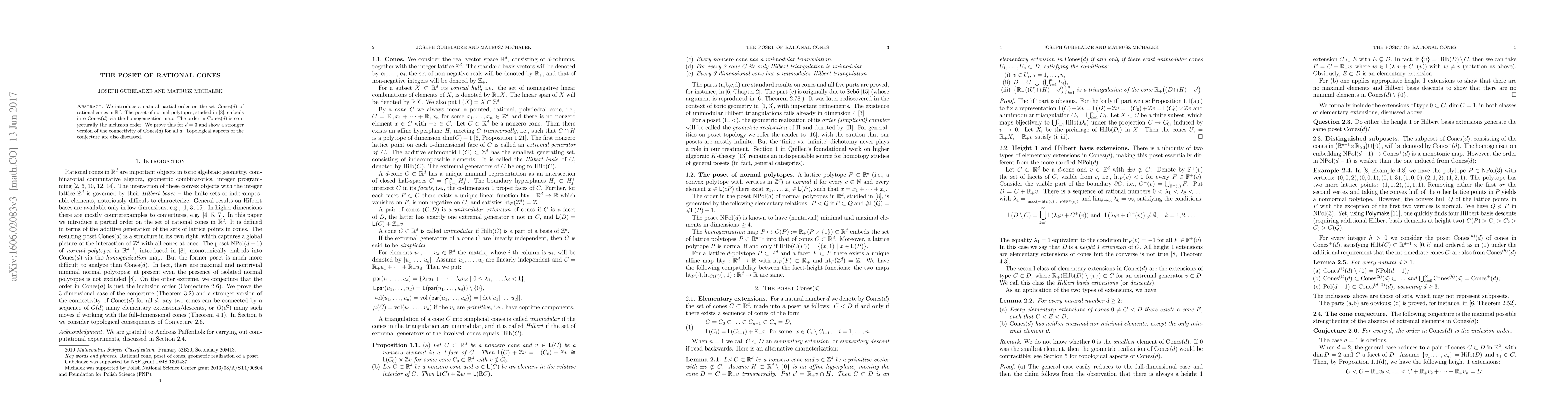 This paper introduces a partial order on rational cones in R^d and demonstrates its conjectural inclusion order by proving it for d=3. It also shows a stronger connectivity version for all d and discusses topological aspects of the conjecture.