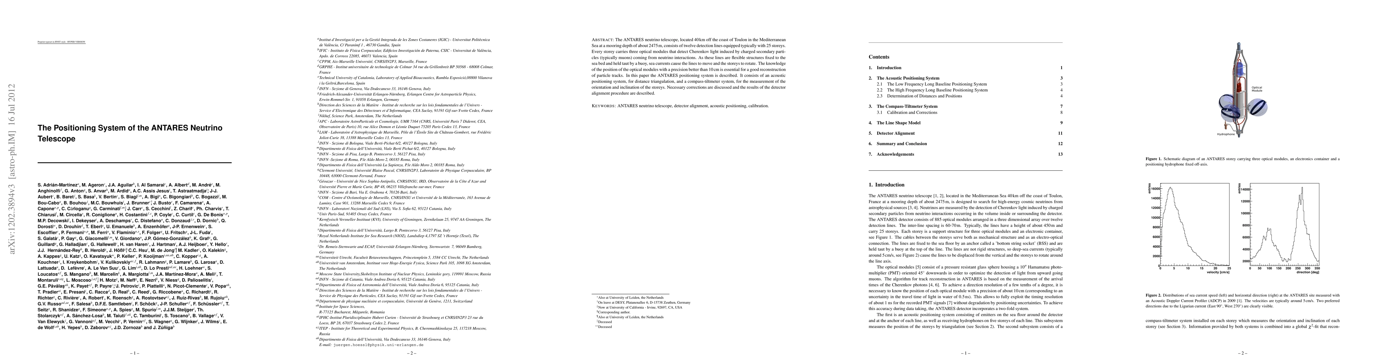 The ANTARES positioning system combines an acoustic triangulation method with a compass-tiltmeter system for precise underwater detector alignment.