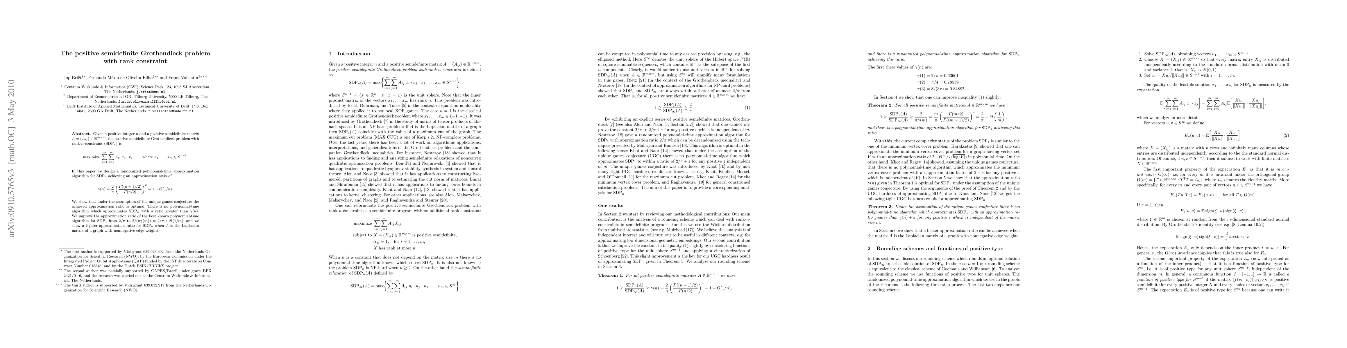 This paper presents a polynomial time approximation algorithm for the positive semidefinite Grothendieck problem with a rank constraint, achieving an approximation ratio of γ(n) = 1 - Θ(1/n). It also proves the optimality of this approximation under the unique games conjecture and improves the known approximation for SDP_1.
