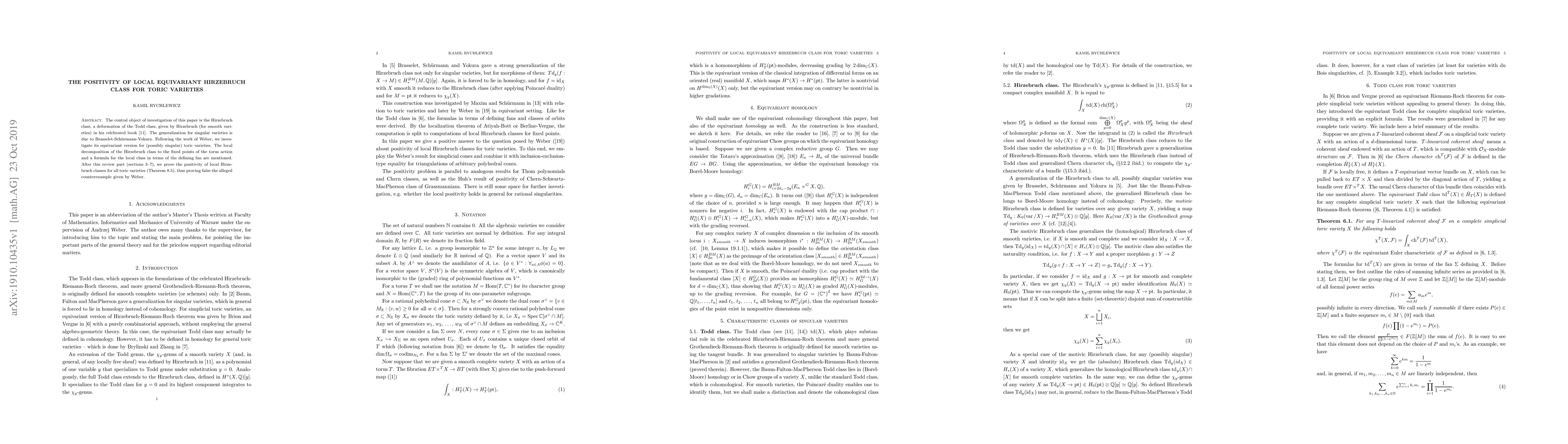 The central object of investigation of this paper is the Hirzebruch class, a deformation of the Todd class, given by Hirzebruch (for smooth varieties) in his celebrated book "Topological Methods in Algebraic Geometry". The generalization for singular varieties is due to Brasselet-Sch\"urmann-Yokura. Following the work of Weber, we investigate its equivariant version for (possibly singular) toric varieties. The local decomposition of the Hirzebruch class to the fixed points of the torus action and a formula for the local class in terms of the defining fan are mentioned. After this review part, we prove the positivity of local Hirzebruch classes for all toric varieties, thus proving false the alleged counterexample given by Weber.