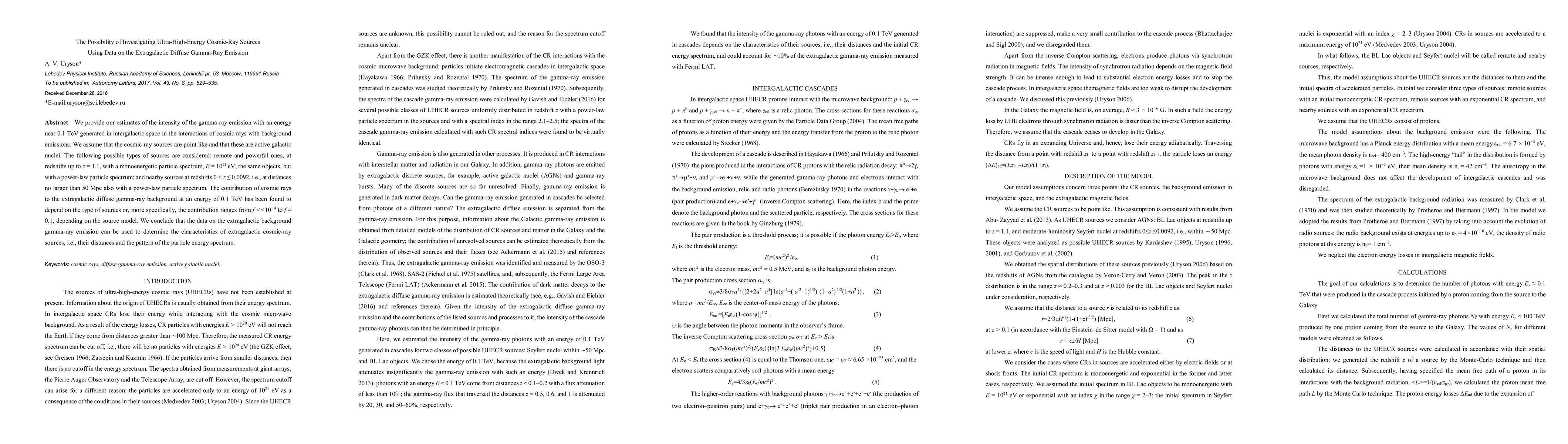 cosmic rays with background emissions. We assume that the cosmic ray sources