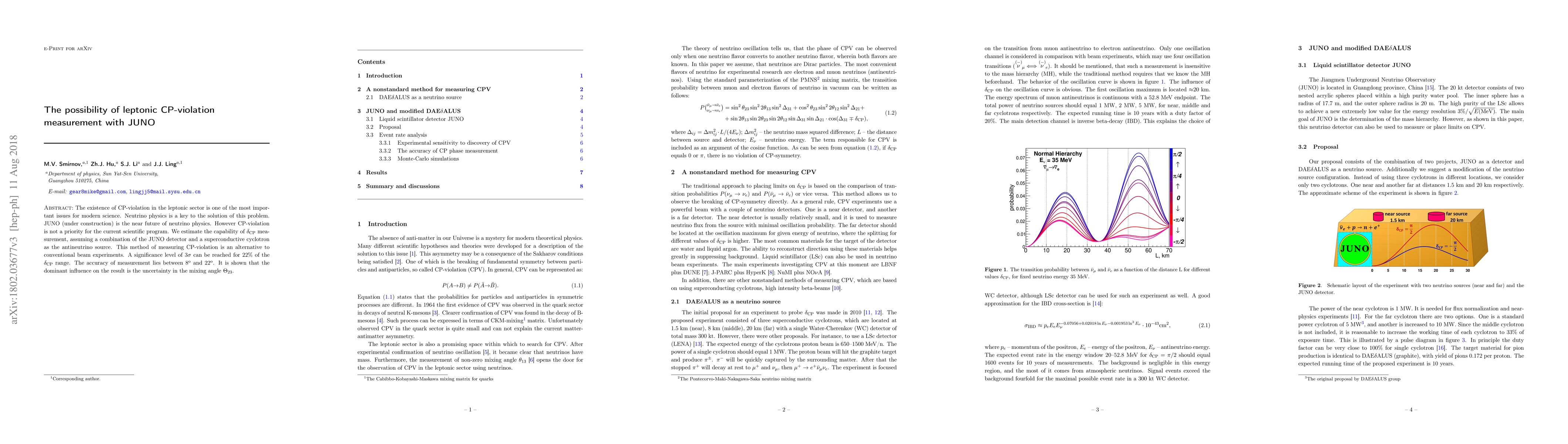 This paper assesses the potential of the JUNO detector, combined with a superconductive cyclotron, to measure leptonic CP-violation, achieving a 3$\sigma$ significance for 22% of the $\delta_{\rm CP}$ range with an accuracy of 8$^{\rm o}$ to 22$^{\rm o}$. The study highlights the uncertainty in the mixing angle $\Theta_{23}$ as the primary factor affecting measurement precision.