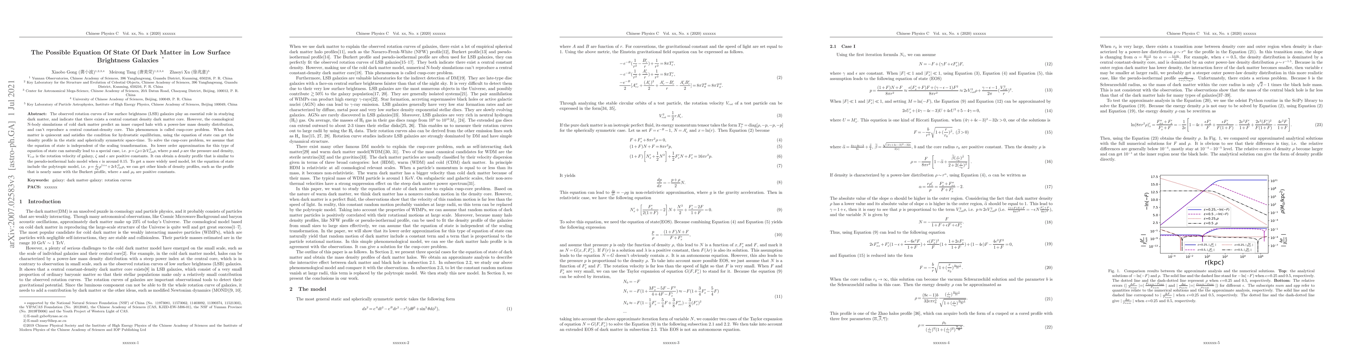 This paper proposes an equation of state for dark matter in low surface brightness galaxies to address the cusp-core problem, suggesting a density profile that aligns with observed rotation curves and a central constant-density core, using a modified hydrostatic equilibrium model. The derived equation incorporates pressure and density terms, potentially leading to profiles similar to the pseudo-isothermal and Burkert models.