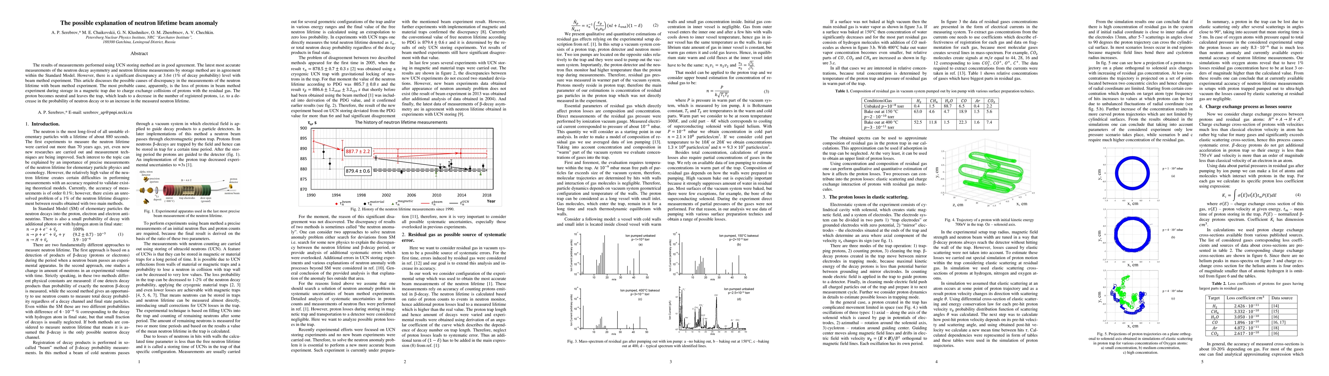 The results of measurements performed using UCN storing method are in good agreement. The latest most accurate measurements of the neutron decay asymmetry and neutron lifetime measurements by storage method are in agreement within the Standard Model. However, there is a significant discrepancy at $3.6\sigma$ (1% of decay probability) level with beam method experiment. This article discusses the possible causes of discrepancy in the measurements of the neutron lifetime with beam method experiment. The most probable cause, apparently, is the loss of protons in beam method experiment during storage in a magnetic trap due to charge exchange collisions of protons with the residual gas. The proton becomes neutral and leaves the trap, which leads to a decrease in the number of registered protons, i.e. to a decrease in the probability of neutron decay or to an increase in the measured neutron lifetime.