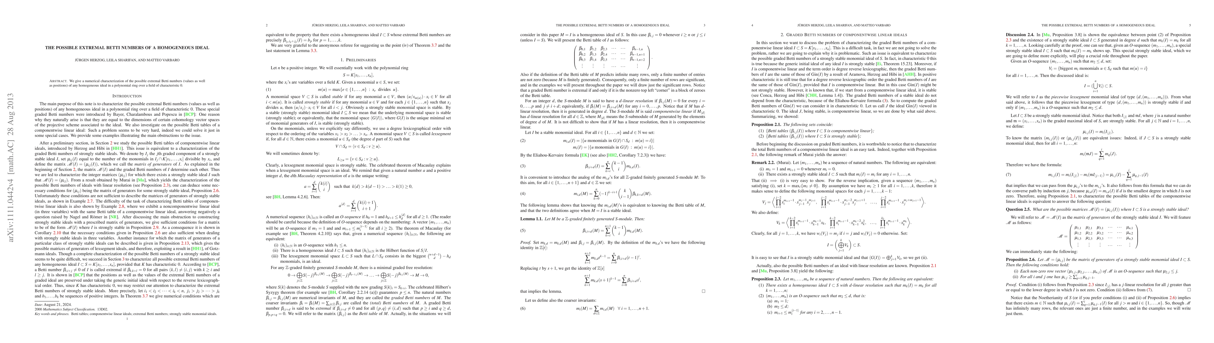 We give a numerical characterization of the possible extremal Betti numbers (values as well as positions) of any homogeneous ideal in a polynomial ring over a field.
