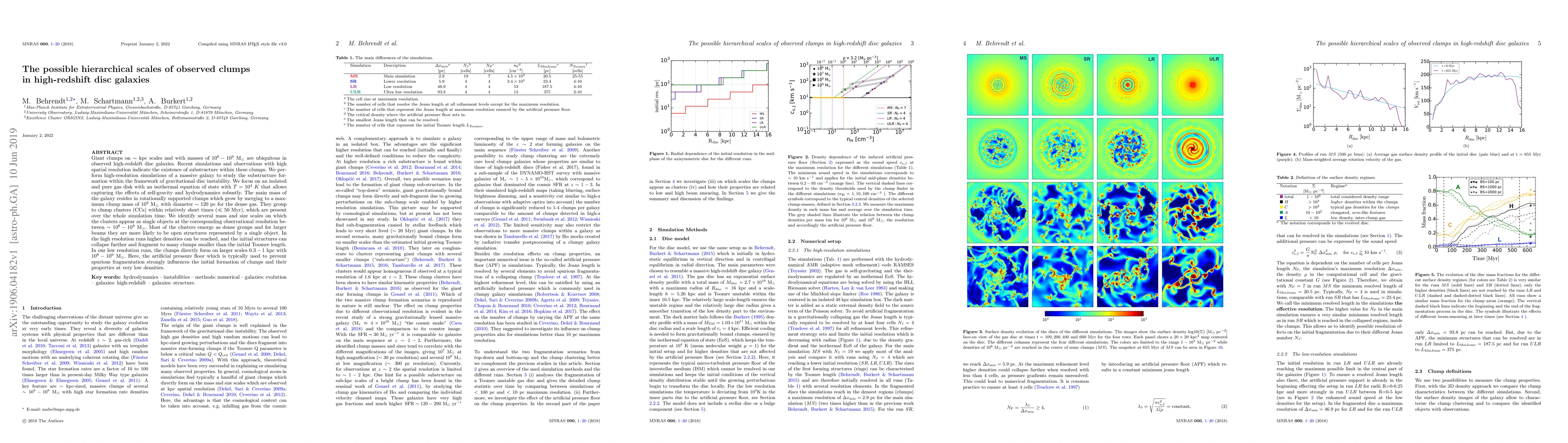 This paper investigates the hierarchical scales of clumps in high-redshift disc galaxies through high-resolution simulations. It finds that giant clumps merge to form dense clump clusters over short timescales, and these clusters appear as single objects at observational resolutions.