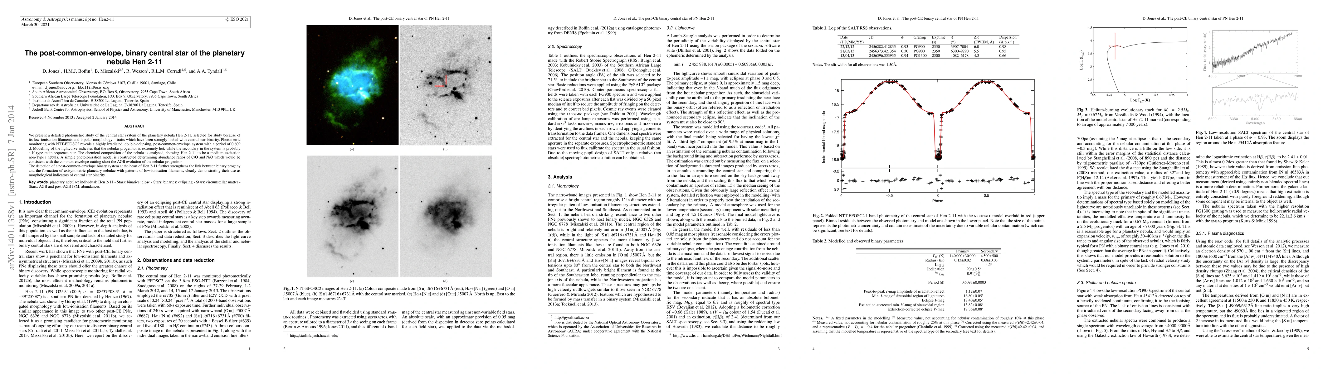 This study reveals a post-common-envelope binary central star system in Hen 2-11, characterized by a double-eclipsing period of 0.609 d, indicating a highly irradiated secondary K-type star. The analysis of the nebula's chemical composition supports the theory that the common envelope phase curtailed the progenitor's AGB evolution, linking binary systems to the formation of axisymmetric planetary nebulae.