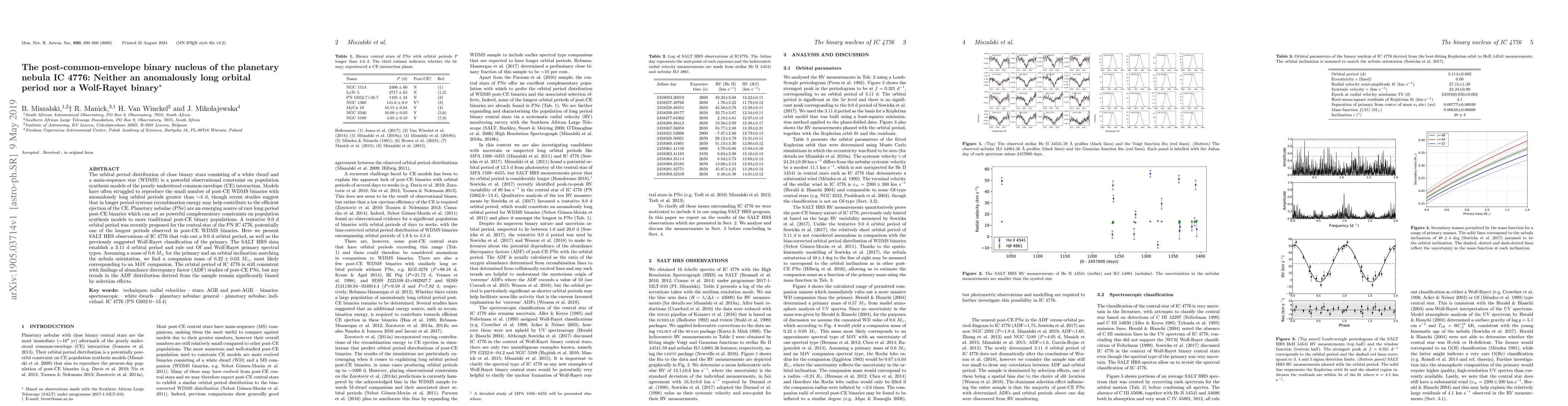 This study uses SALT HRS observations to determine the orbital period of the central binary in the planetary nebula IC~4776, finding a 3.11 d period instead of the previously proposed 9.0 d, and refutes the classification of the primary as a Wolf-Rayet star. The primary is likely an M4V companion with a mass of 0.22 $M_\odot$.