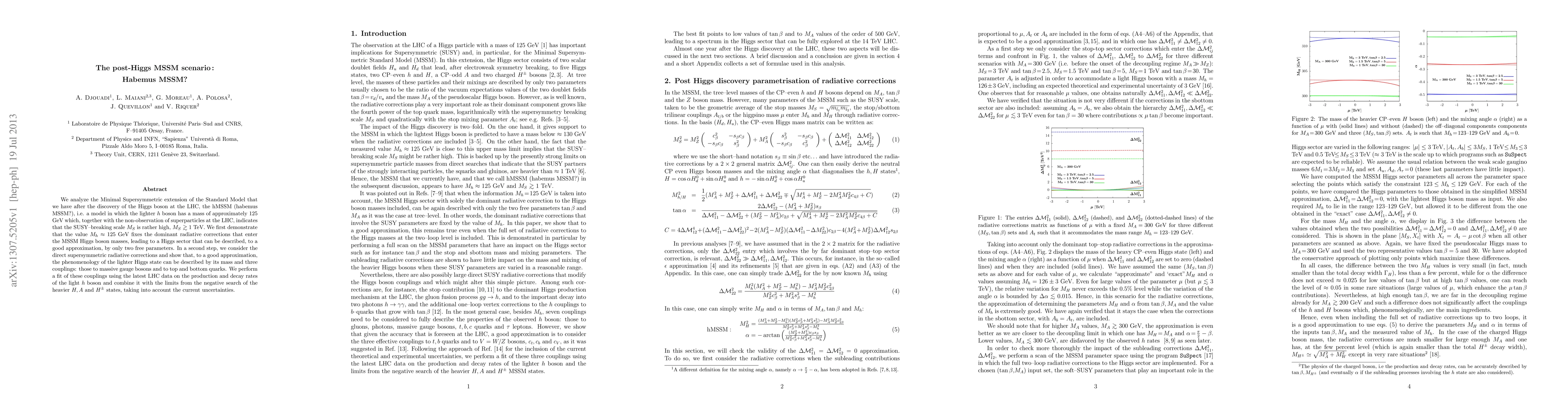 We analyze the Minimal Supersymmetric extension of the Standard Model that we have after the discovery of the Higgs boson at the LHC, the hMSSM (habemus MSSM?), i.e. a model in which the lighter $h$ boson has a mass of approximately 125 GeV which, together with the non-observation of superparticles at the LHC, indicates that the SUSY-breaking scale $M_S$ is rather high, $M_S > 1$ TeV. We first demonstrate that the value $M_h \approx 125$ GeV fixes the dominant radiative corrections that enter the MSSM Higgs boson masses, leading to a Higgs sector that can be described, to a good approximation, by only two free parameters. In a second step, we consider the direct supersymmetric radiative corrections and show that, to a good approximation, the phenomenology of the lighter Higgs state can be described by its mass and three couplings: those to massive gauge bosons and to top and bottom quarks. We perform a fit of these couplings using the latest LHC data on the production and decay rates of the light $h$ boson and combine it with the limits from the negative search of the heavier $H,A$ and $H^\pm$ states, taking into account the current uncertainties.