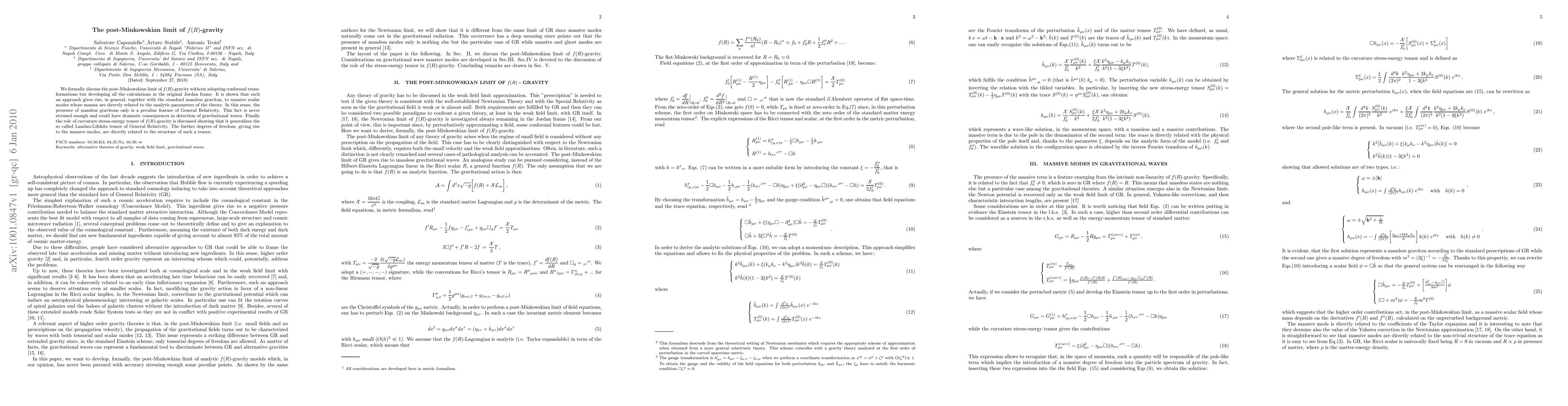 We formally discuss the post-Minkowskian limit of $f(R)$-gravity without adopting conformal transformations but developing all the calculations in the original Jordan frame. It is shown that such an approach gives rise, in general, together with the standard massless graviton, to massive scalar modes whose masses are directly related to the analytic parameters of the theory. In this sense, the presence of massless gravitons only is a peculiar feature of General Relativity. This fact is never stressed enough and could have dramatic consequences in detection of gravitational waves. Finally the role of curvature stress-energy tensor of $f(R)$-gravity is discussed showing that it generalizes the so called Landau-Lifshitz tensor of General Relativity. The further degrees of freedom, giving rise to the massive modes, are directly related to the structure of such a tensor.