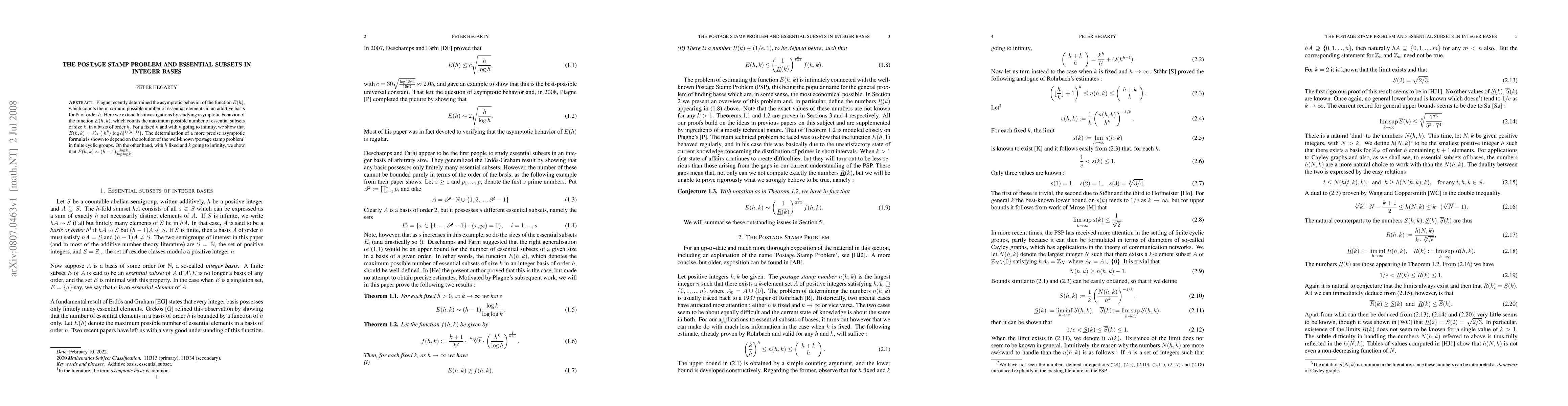 Plagne recently determined the asymptotic behavior of the function E(h), which counts the maximum possible number of essential elements in an additive basis for N of order h. Here we extend his investigations by studying asymptotic behavior of the function E(h,k), which counts the maximum possible number of essential subsets of size k, in a basis of order h. For a fixed k and with h going to infinity, we show that E(h,k) = \Theta_{k} ([h^{k}/\log h]^{1/(k+1)}). The determination of a more precise asymptotic formula is shown to depend on the solution of the well-known "postage stamp problem" in finite cyclic groups. On the other hand, with h fixed and k going to infinity, we show that E(h,k) \sim (h-1) {\log k \over \log \log k}.