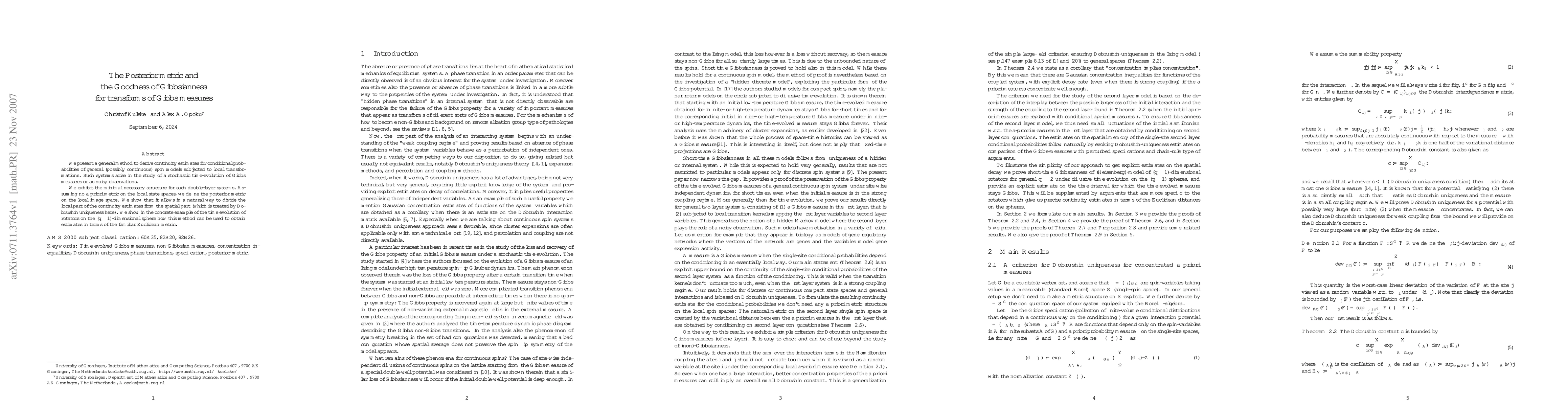 Researchers developed a method to estimate continuity for conditional probabilities in spin models undergoing local transformations, allowing for natural division between spatial and metric parts.