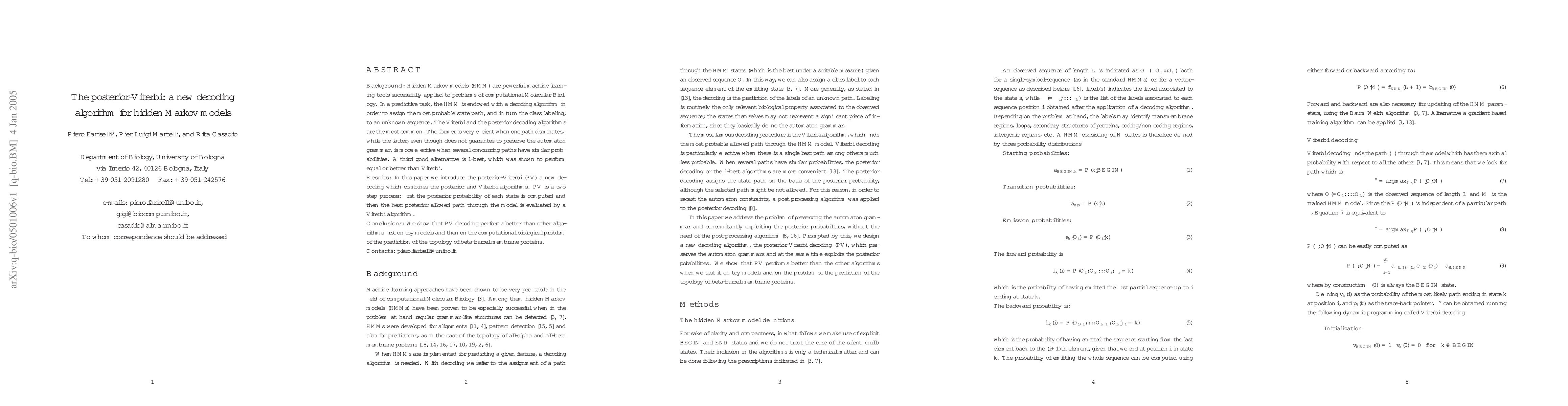 The paper introduces the posterior-Viterbi (PV), a novel decoding algorithm for hidden Markov models (HMM) that combines the posterior and Viterbi algorithms in a two-step process: first computing the posterior probability of each state and then evaluating the best posterior allowed path through the model using the Viterbi algorithm.