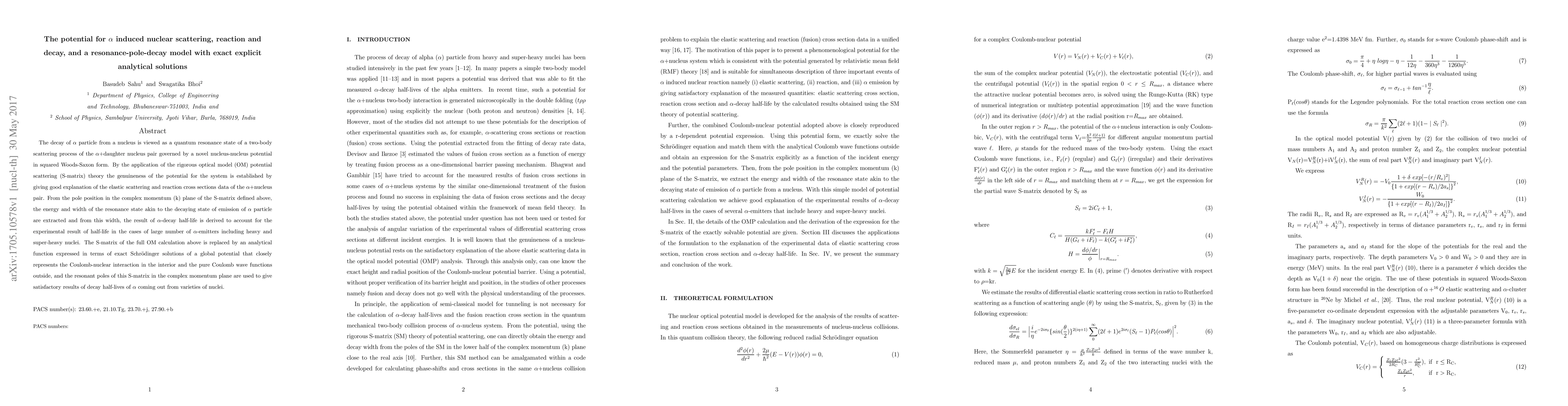 The decay of $\alpha$ particle from a nucleus is viewed as a quantum resonance state of a two-body scattering process of the $\alpha$+daughter nucleus pair governed by a novel nucleus-nucleus potential in squared Woods-Saxon form. By the application of the rigorous optical model (OM) potential scattering (S-matrix) theory the genuineness of the potential for the system is established by giving good explanation of the elastic scattering and reaction cross sections data of the $\alpha$+nucleus pair. From the pole position in the complex momentum (k) plane of the S-matrix defined above, the energy and width of the resonance state akin to the decaying state of emission of $\alpha$ particle are extracted and from this width, the result of $\alpha$-decay half-life is derived to account for the experimental result of half-life in the cases of large number of $\alpha$-emitters including heavy and super-heavy nuclei. The S-matrix of the full OM calculation above is replaced by an analytical function expressed in terms of exact Schr\"{o}dinger solutions of a global potential that closely represents the Coulomb-nuclear interaction in the interior and the pure Coulomb wave functions outside, and the resonant poles of this S-matrix in the complex momentum plane are used to give satisfactory results of decay half-lives of $\alpha$ coming out from varieties of nuclei.