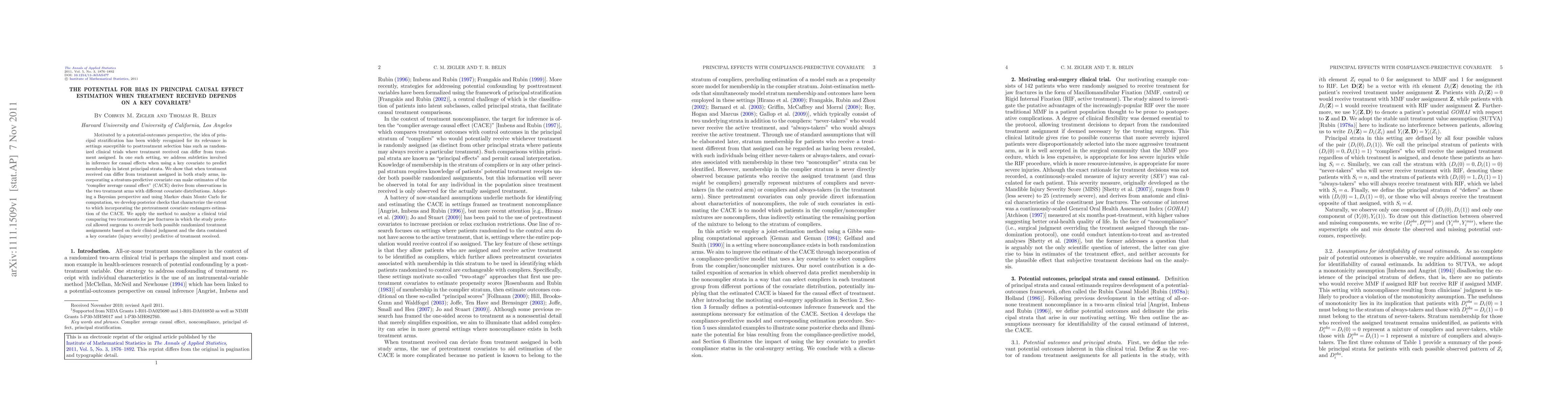 This paper investigates the potential for bias in estimating causal effects when treatment received depends on a key covariate, using principal stratification to address posttreatment selection bias. It develops Bayesian methods to assess the impact of incorporating predictive covariates on estimates of the complier average causal effect, applying the approach to a clinical trial on jaw fracture treatments.