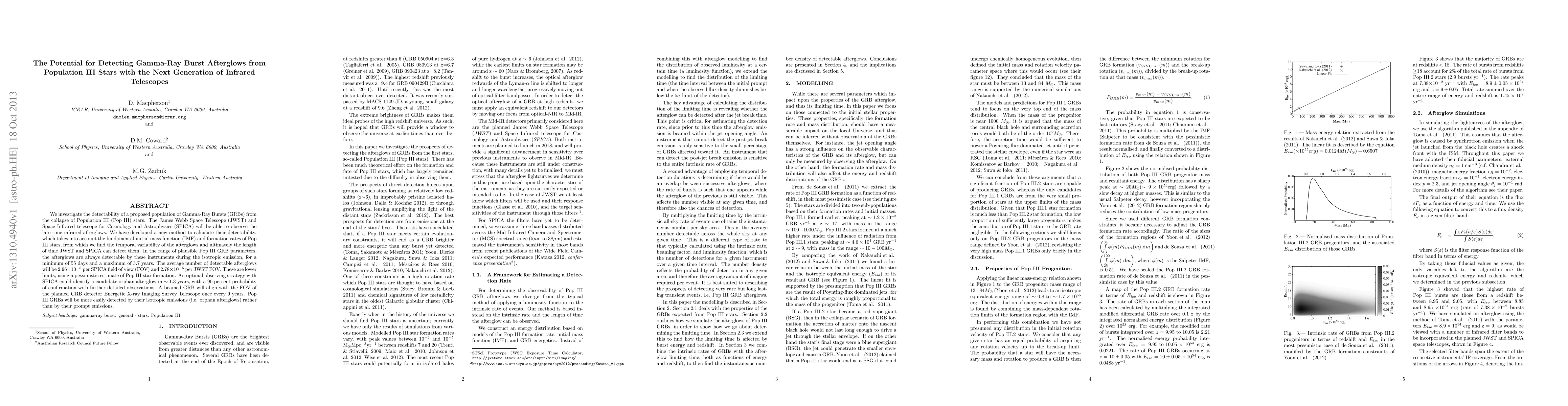 We investigate the detectability of a proposed population of Gamma-Ray Bursts (GRBs) from the collapse of Population III (Pop III) stars. The James Webb Space Telescope (JWST) and Space Infrared telescope for Cosmology and Astrophysics (SPICA) will be able to observe the late time infrared afterglows. We have developed a new method to calculate their detectability, which takes into account the fundamental initial mass function (IMF) and formation rates of Pop III stars, from which we find the temporal variability of the afterglows and ultimately the length of time JWST and SPICA can detect them. In the range of plausible Pop III GRB parameters, the afterglows are always detectable by these instruments during the isotropic emission, for a minimum of 55 days and a maximum of 3.7 years. The average number of detectable afterglows will be 2.96$\times 10^{-5}$ per SPICA field of view (FOV) and 2.78$\times 10^{-6}$ per JWST FOV. These are lower limits, using a pessimistic estimate of Pop III star formation. An optimal observing strategy with SPICA could identify a candidate orphan afterglow in $\sim 1.3$ years, with a 90 percent probability of confirmation with further detailed observations. A beamed GRB will align with the FOV of the planned GRB detector Energetic X-ray Imaging Survey Telescope once every 9 years. Pop III GRBs will be more easily detected by their isotropic emissions (i.e. orphan afterglows) rather than by their prompt emissions.