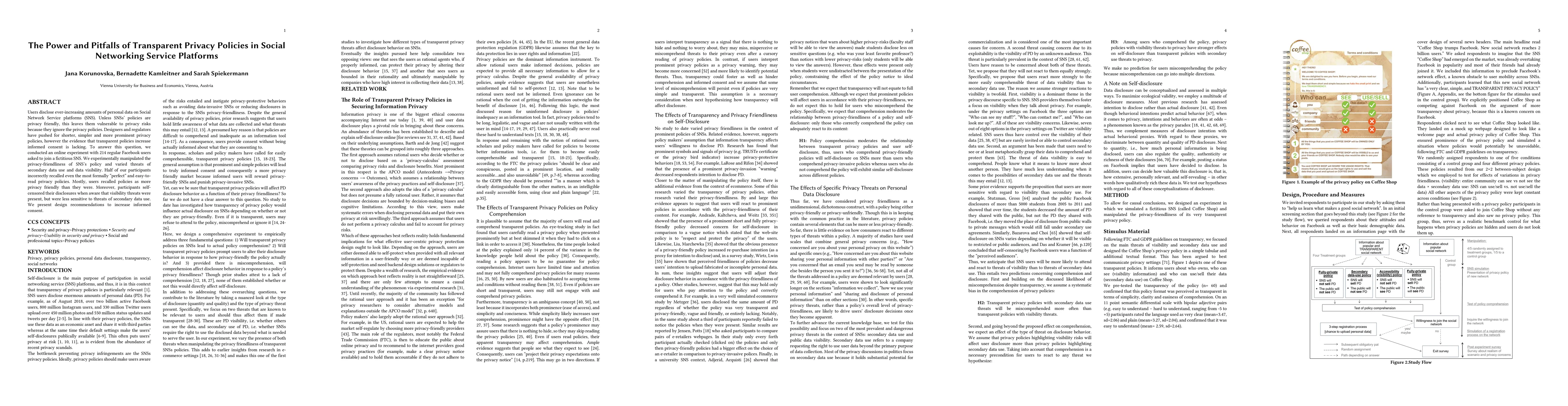 This study investigates the effectiveness of transparent privacy policies on social networking platforms, finding that users often misinterpret even well-crafted policies, leading to poor informed consent. Despite awareness of privacy threats, users were more sensitive to visibility threats than secondary data use threats, suggesting a need for better policy design.