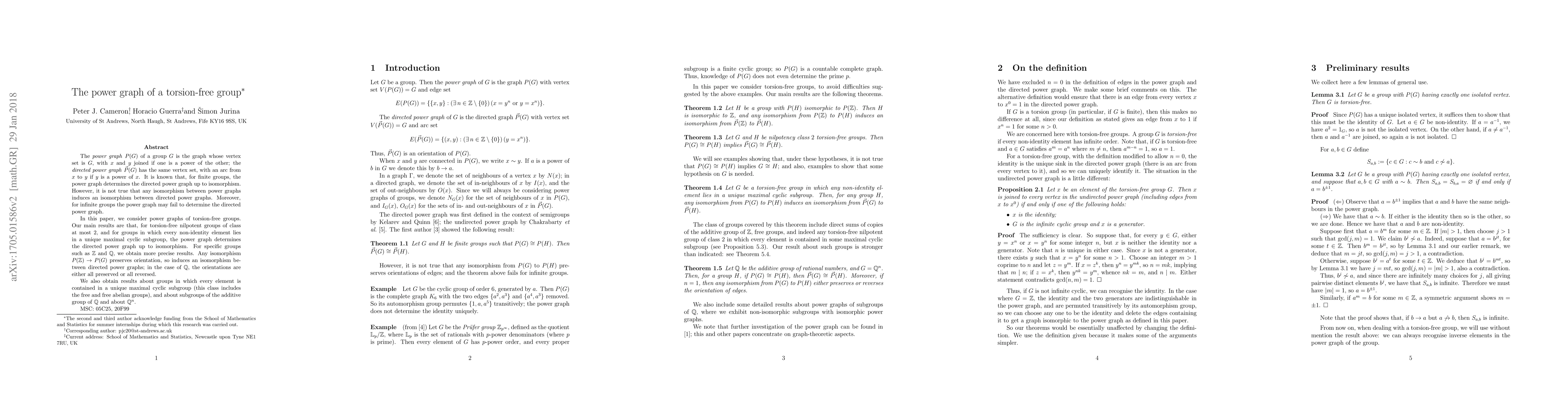 The \emph{power graph} $P(G)$ of a group $G$ is the graph whose vertex set is $G$, with $x$ and $y$ joined if one is a power of the other; the \emph{directed power graph} $\vec{P}(G)$ has the same vertex set, with an arc from $x$ to $y$ if $y$ is a power of $x$. It is known that, for finite groups, the power graph determines the directed power graph up to isomorphism. However, it is not true that any isomorphism between power graphs induces an isomorphism between directed power graphs. Moreover, for infinite groups the power graph may fail to determine the directed power graph. In this paper, we consider power graphs of torsion-free groups. Our main results are that, for torsion-free nilpotent groups of class at most $2$, and for groups in which every non-identity element lies in a unique maximal cyclic subgroup, the power graph determines the directed power graph up to isomorphism. For specific groups such as $\mathbb{Z}$ and $\mathbb{Q}$, we obtain more precise results. Any isomorphism $P(\mathbb{Z})\to P(G)$ preserves orientation, so induces an isomorphism between directed power graphs; in the case of $\mathbb{Q}$, the orientations are either all preserved or all reversed. We also obtain results about groups in which every element is contained in a unique maximal cyclic subgroup (this class includes the free and free abelian groups), and about subgroups of the additive group of $\mathbb{Q}$ and about $\mathbb{Q}^n$.