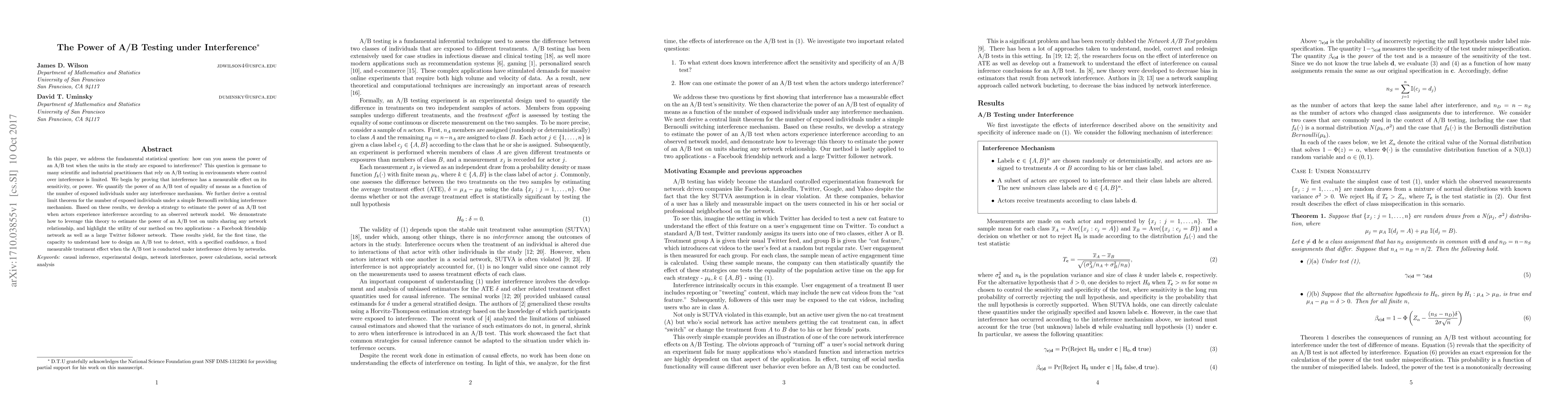 This paper investigates the impact of interference on the power of A/B tests, demonstrating that interference affects sensitivity and deriving a central limit theorem for exposed individuals under a Bernoulli switching mechanism. It proposes a method to estimate A/B test power in network-driven interference scenarios, illustrated through applications on Facebook and Twitter networks.
